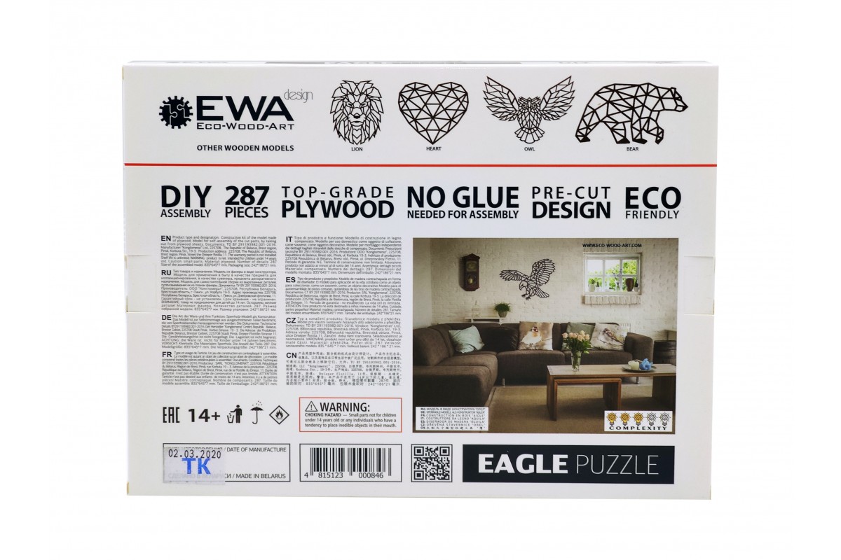 Eco Wood Art не перестает нас удивлять. И вот готова целая серия EWA Design - деревянный интерьерный пазл на стену. Несложный полигональный конструктор, но принесет усладу для глаз и освежит ваши монотонные стены. Вариант размещения на стене вы можете наблюдать на фотографии.