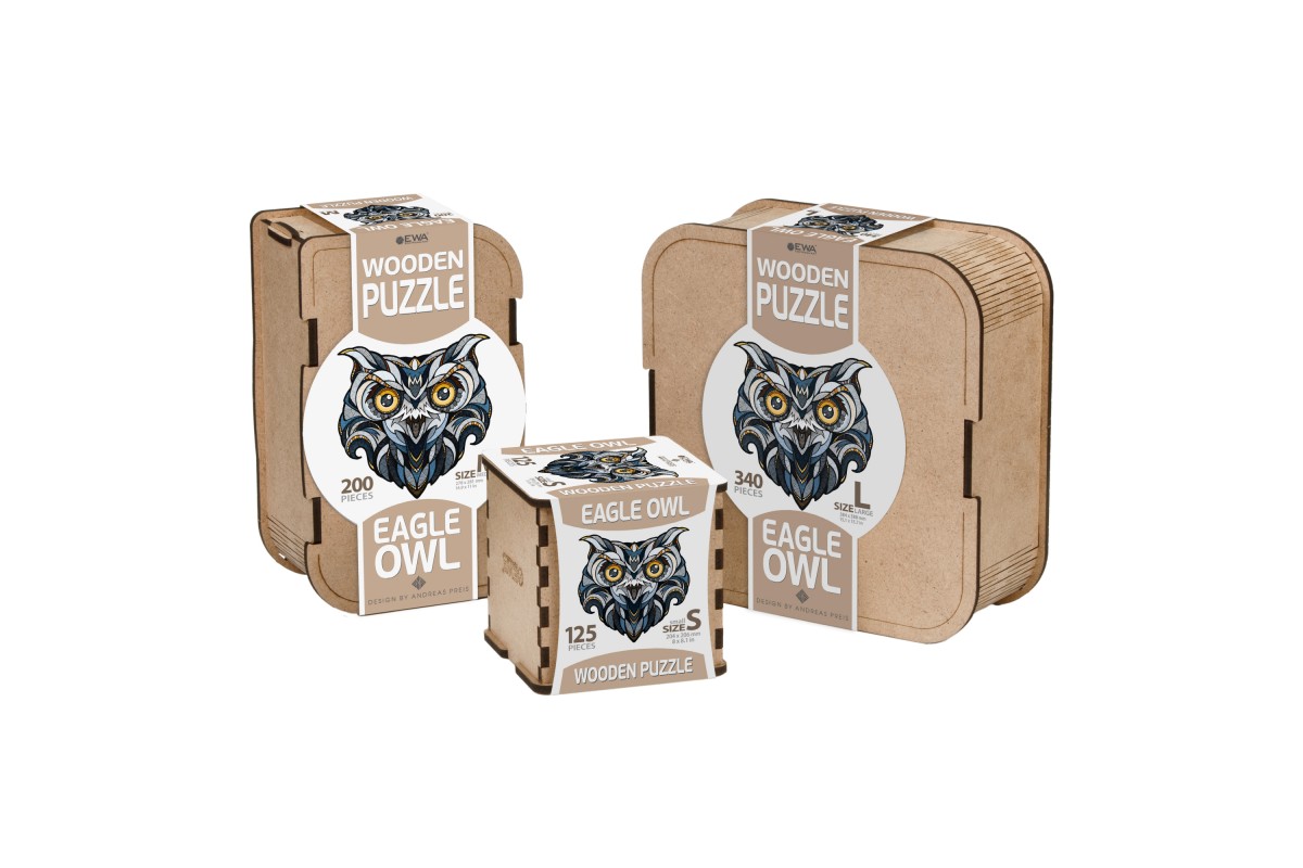 Каждая деревянная головоломка Eco Wood Art – это уникальное творение, сложное и красочное изображение, сделанное из лучших высококачественных материалов. Выберете один из трех размеров на свой вкус, чем больше картина- тем больше анималистичных деталей.