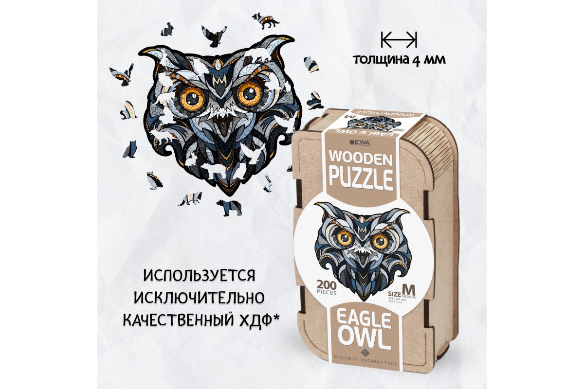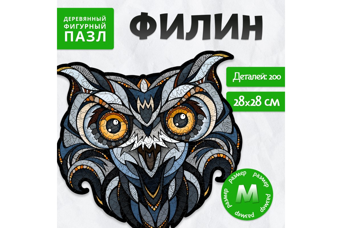 Деревянный пазл «Филин» среднего размера 28х28 см – это захватывающий способ провести время с друзьями и семьей.