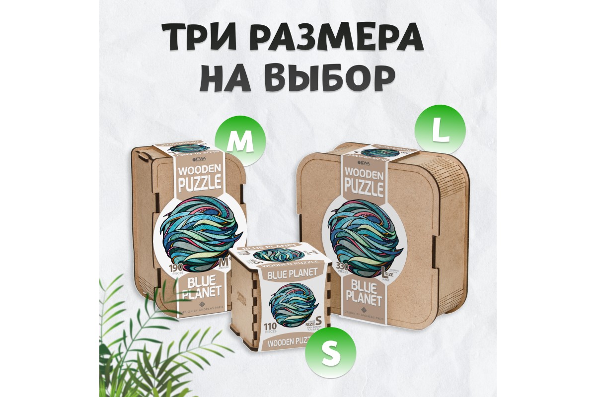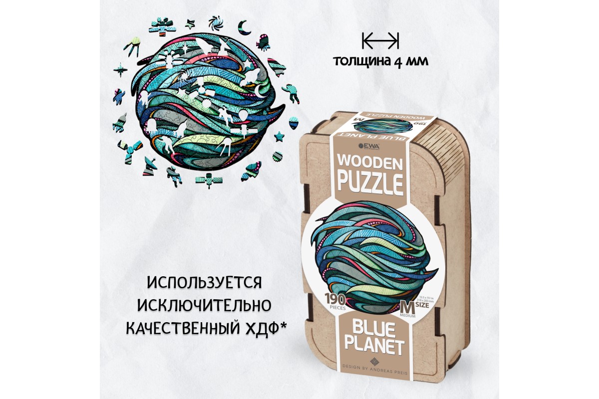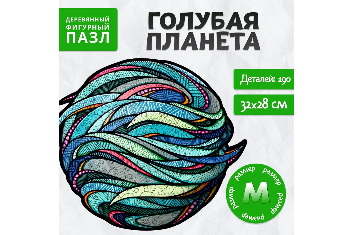Деревянный пазл «Голубая планета» среднего размера 32х28 см – это захватывающий способ провести время с друзьями и семьей.