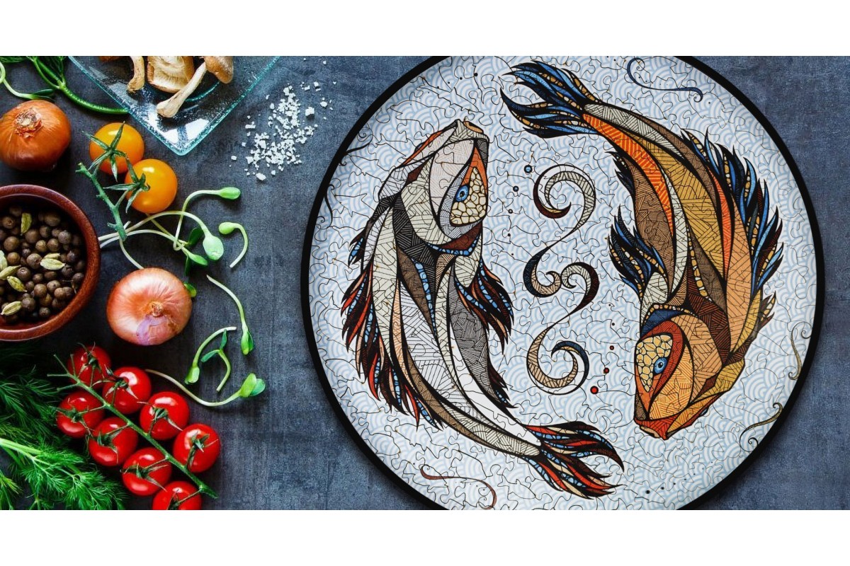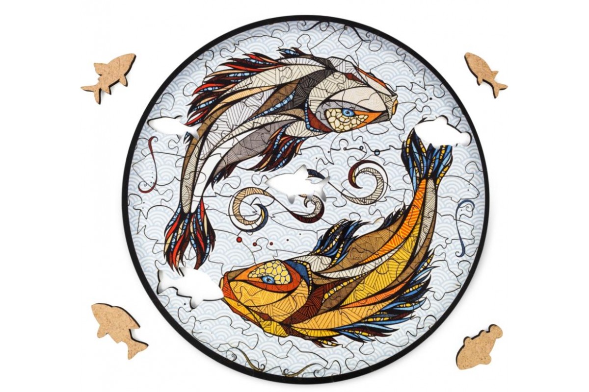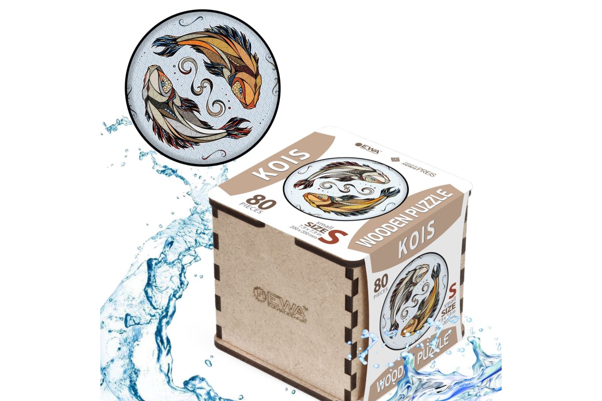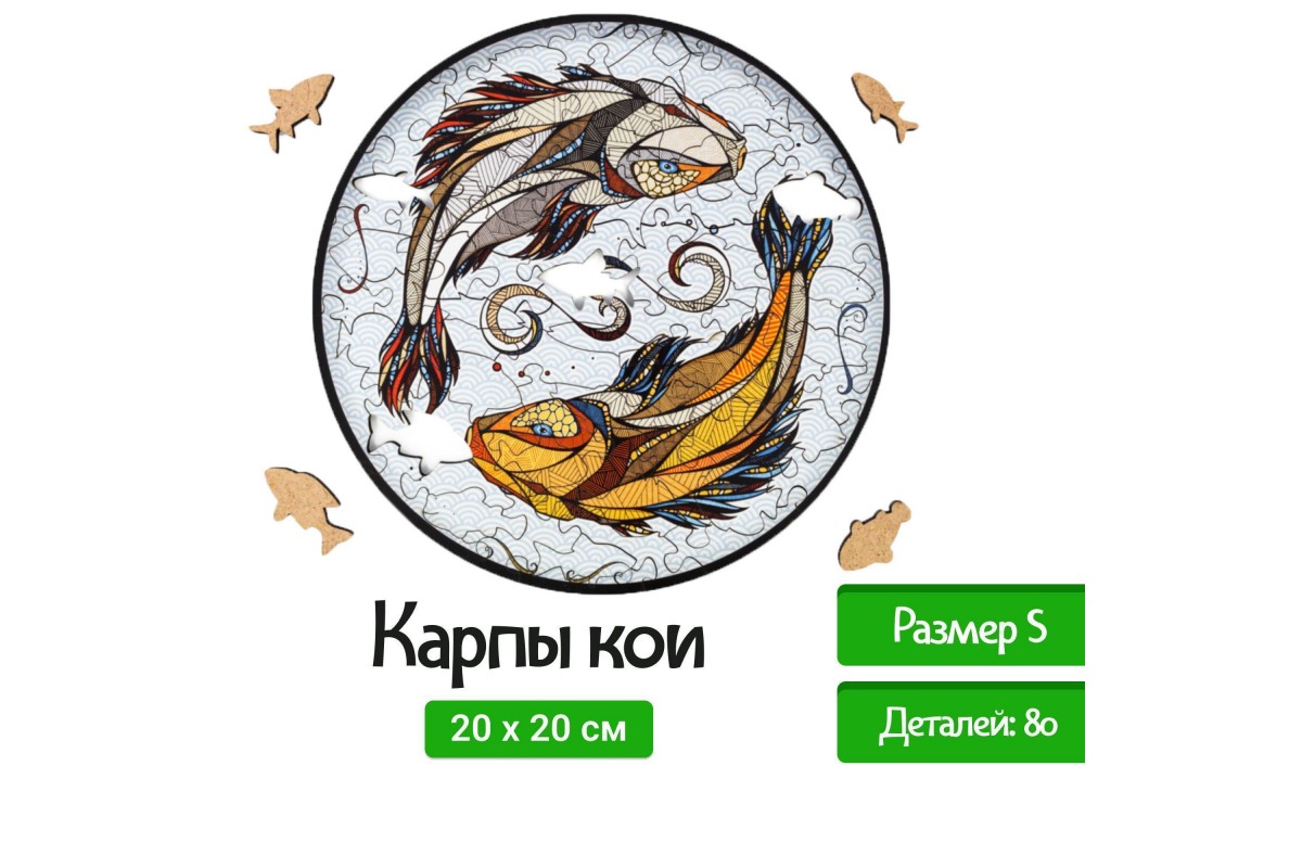 Деревянный пазл для детей и взрослых, фигурный пазл с уникальными деталями Eco Wood Art "Рыбы Карпы Кои" размера S - это настоящая головоломка, ваша ловкость может пригодиться в сборке. Пазл изготовлен по оригинальной иллюстрации знаменитого художника Андреаса Прайса.