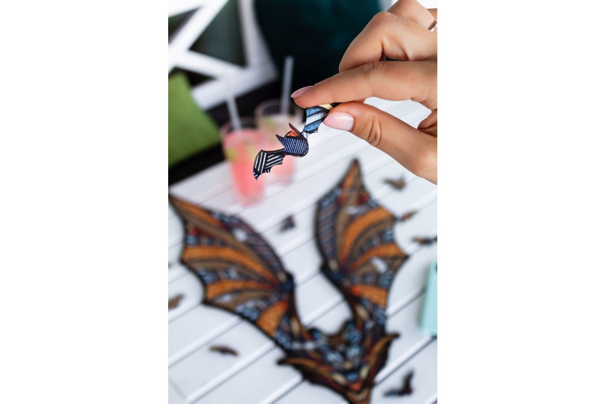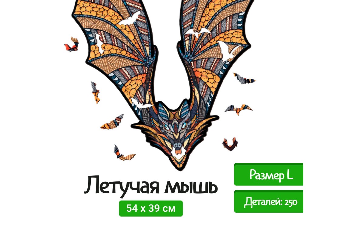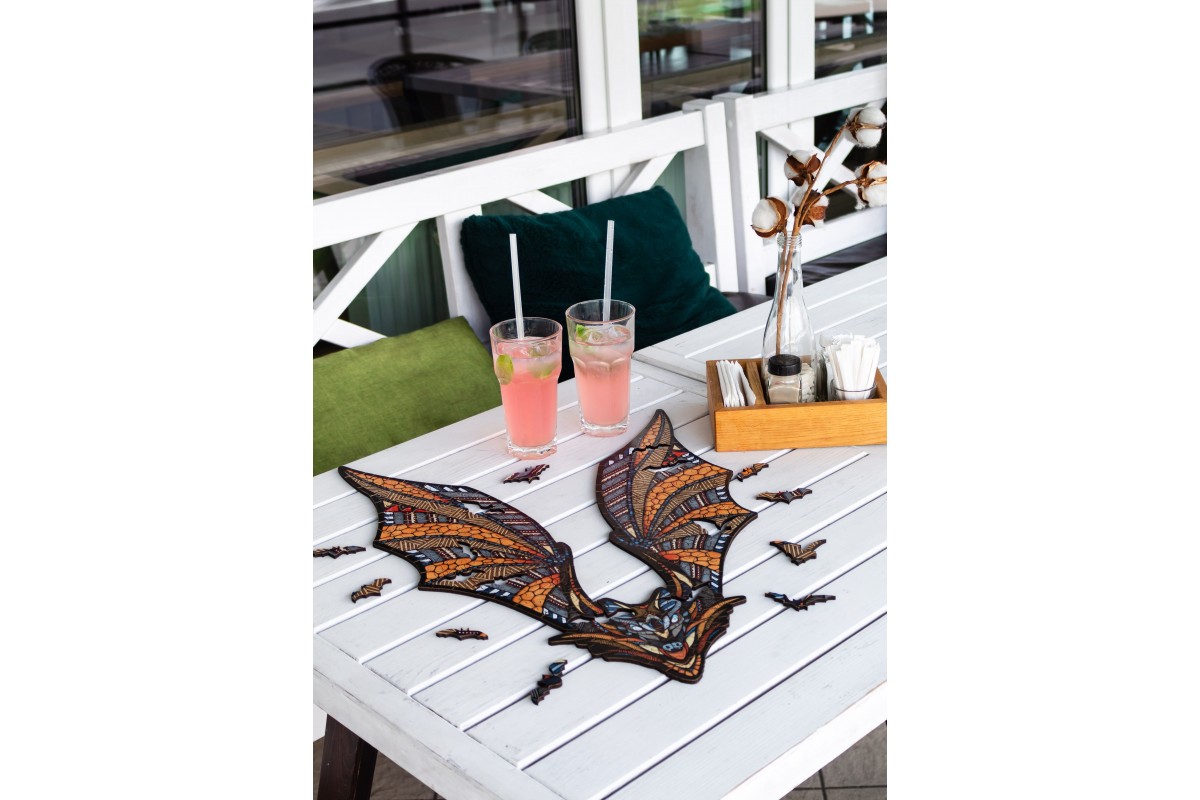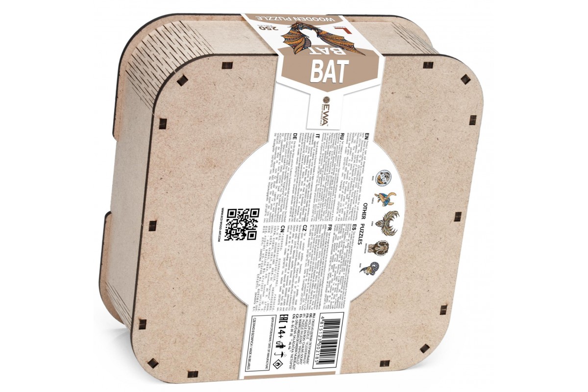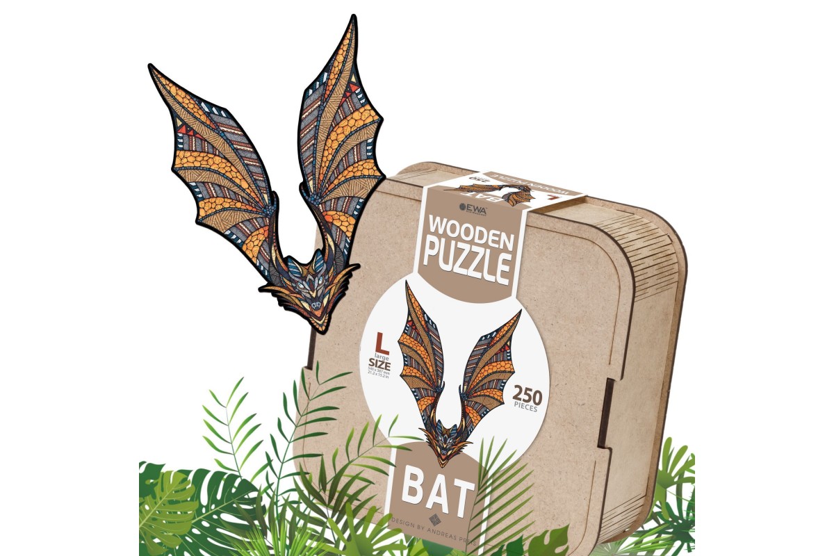 Деревянный пазл для детей и взрослых, фигурный пазл с уникальными деталями Eco Wood Art "Летучая Мышь" размера L - это настоящая головоломка, ваша ловкость может пригодиться в сборке. Пазл изготовлен по оригинальной иллюстрации знаменитого художника Андреаса Прайса.