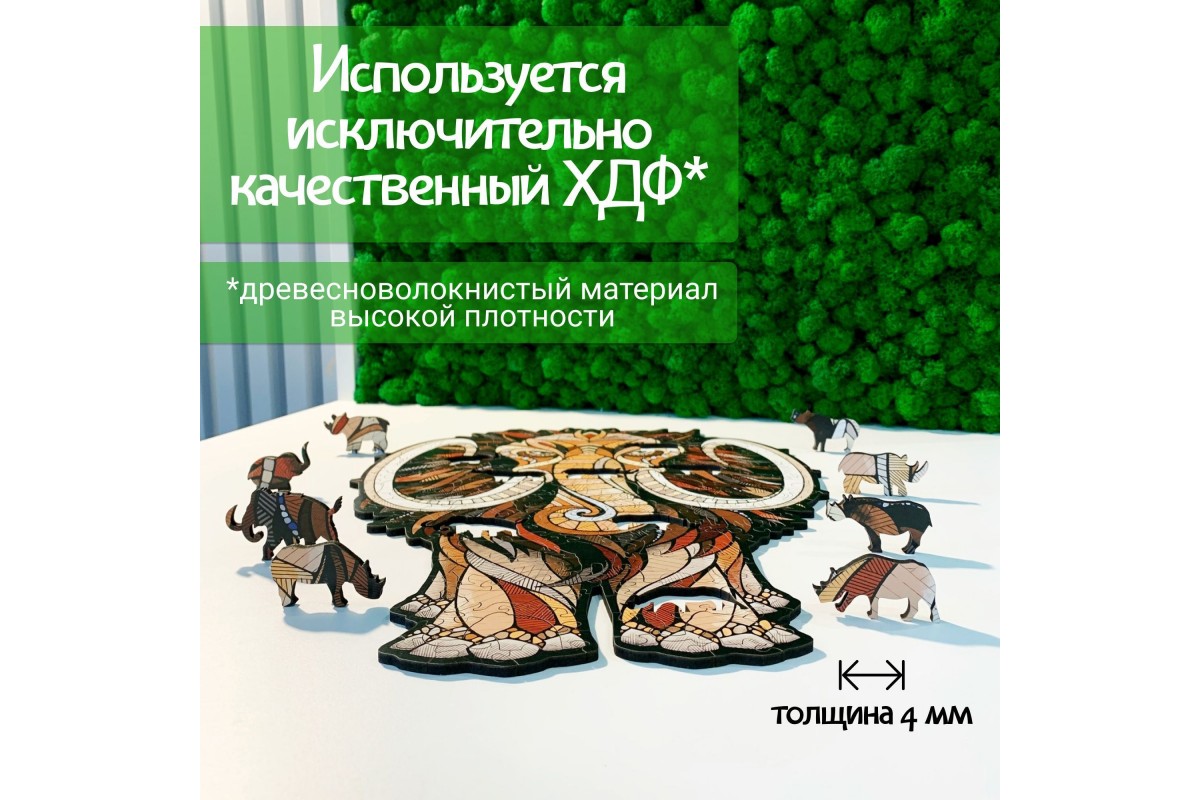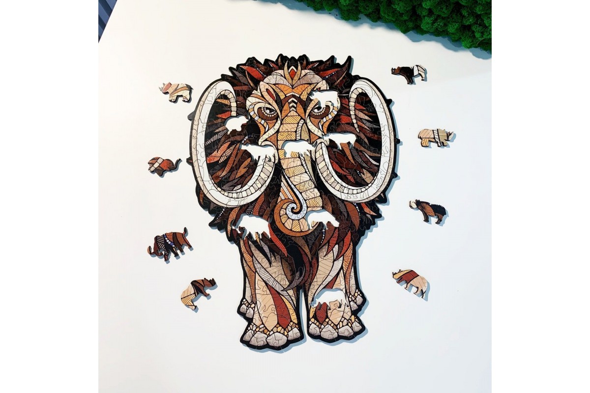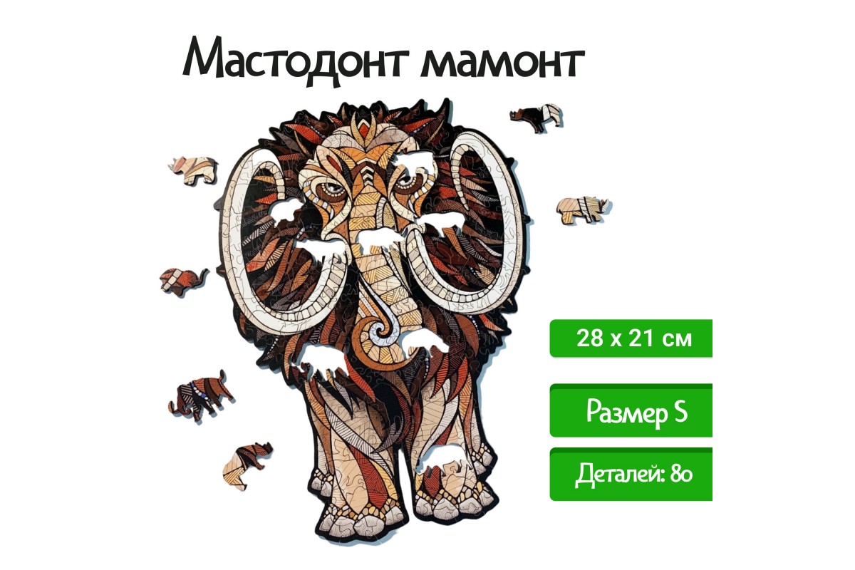 Деревянный пазл для детей и взрослых, фигурный пазл с уникальными деталями Eco Wood Art "Мастодон Мамонт" размера S - это настоящая головоломка, ваша ловкость может пригодиться в сборке. Пазл изготовлен по оригинальной иллюстрации знаменитого художника Андреаса Прайса.
