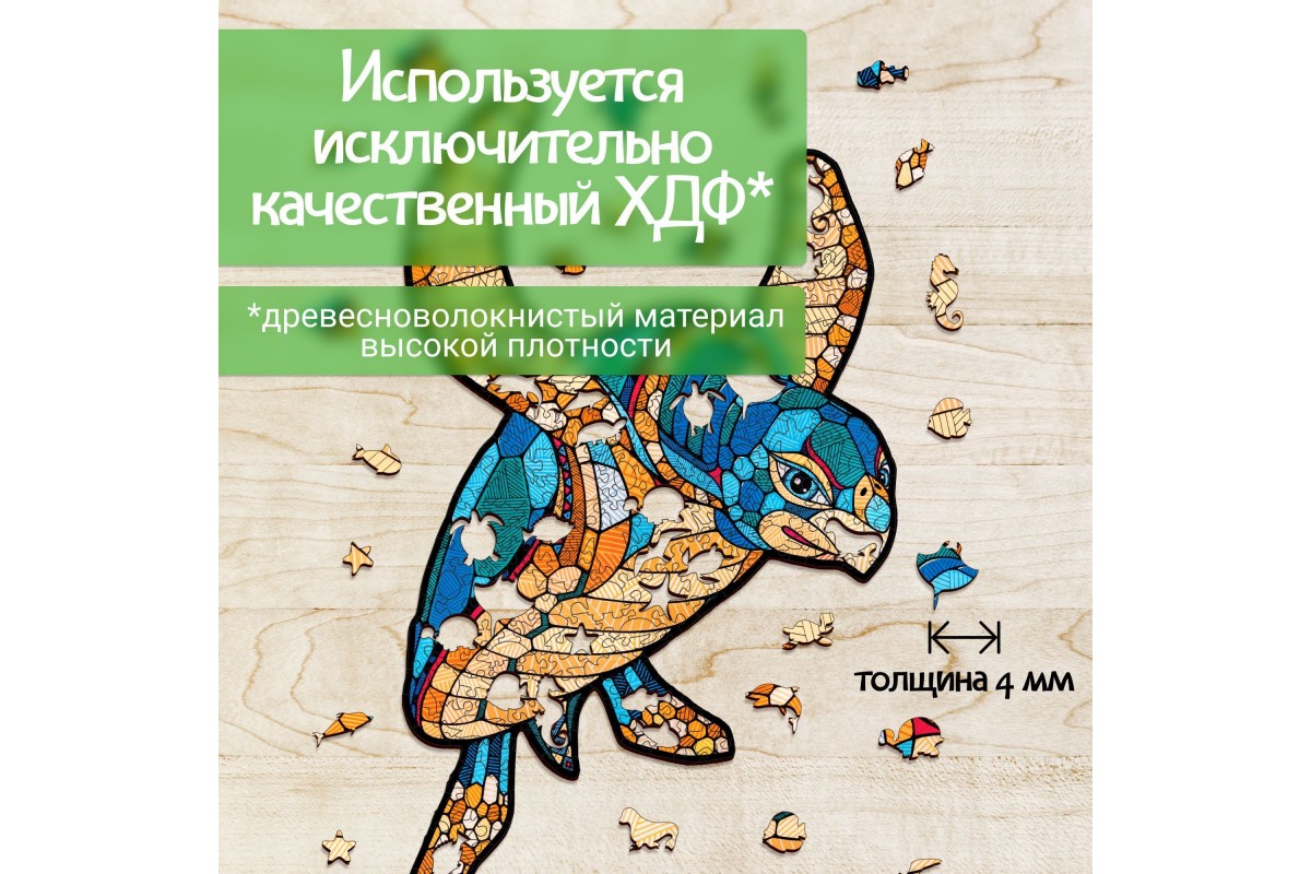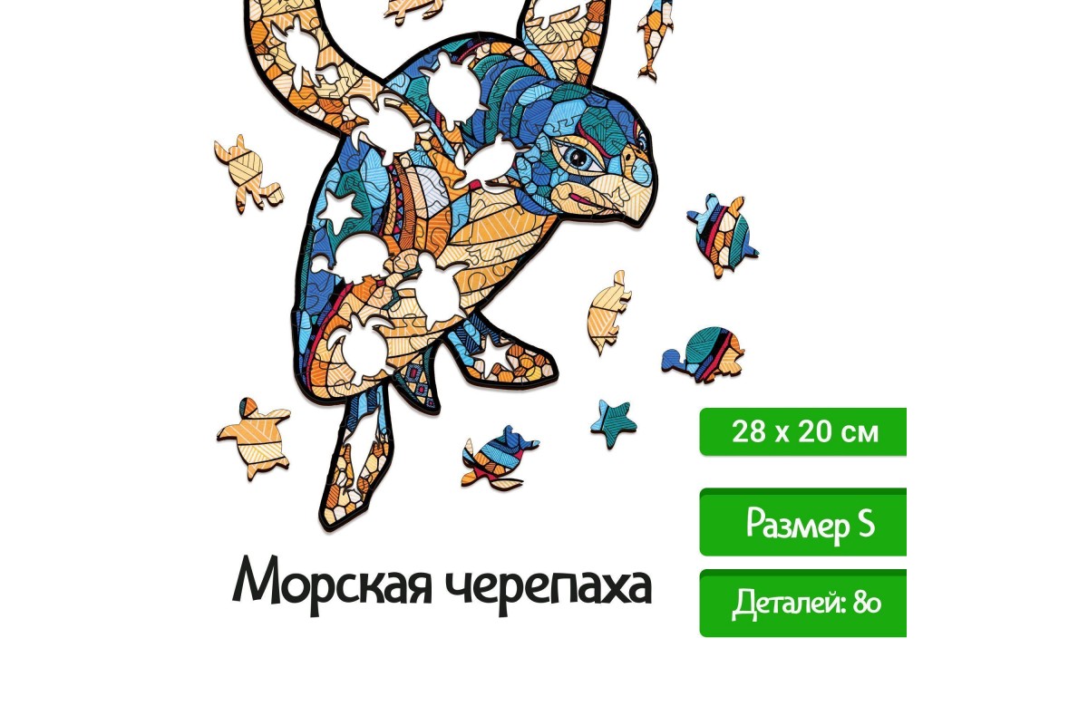 Деревянный пазл для детей и взрослых, фигурный пазл с уникальными деталями Eco Wood Art "Морская Черепаха" размера S - это настоящая головоломка, ваша ловкость может пригодиться в сборке. Пазл изготовлен по оригинальной иллюстрации знаменитого художника Андреаса Прайса.