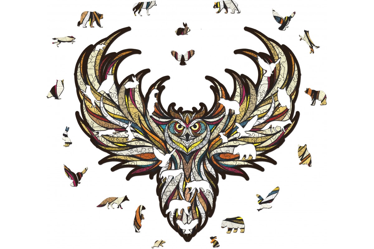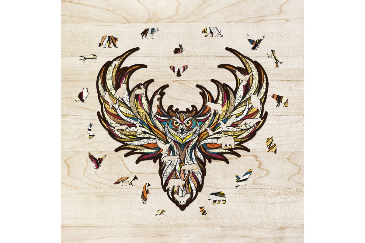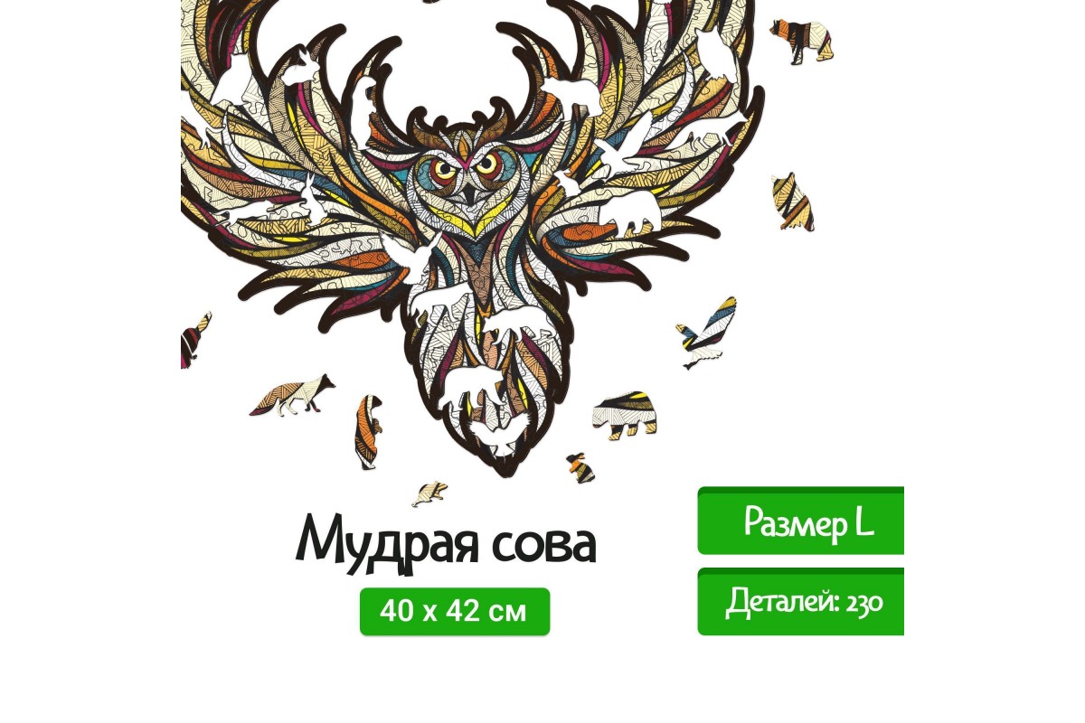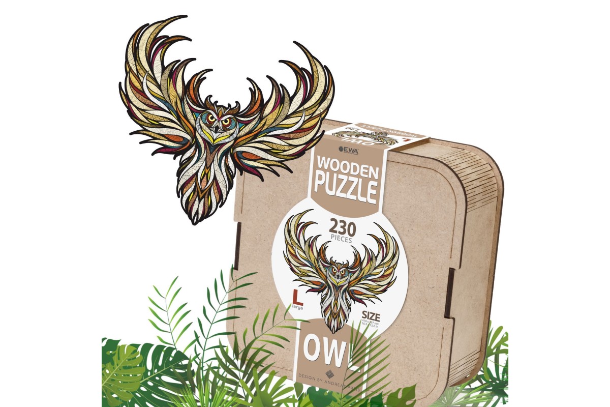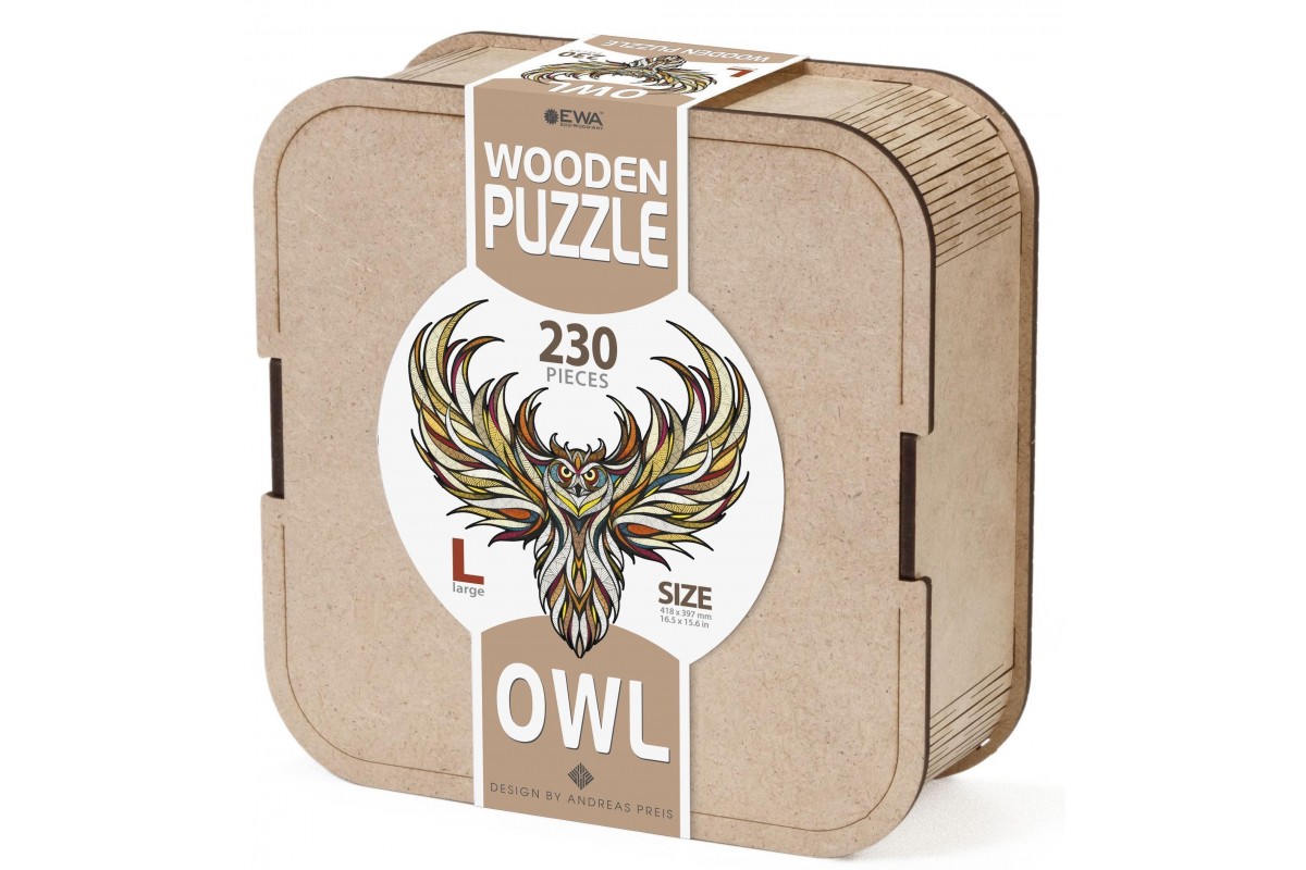 Деревянный пазл для детей и взрослых, фигурный пазл с уникальными деталями Eco Wood Art "Мудрая Сова" размера L - это настоящая головоломка, ваша ловкость может пригодиться в сборке. Пазл изготовлен по оригинальной иллюстрации знаменитого художника Андреаса Прайса.