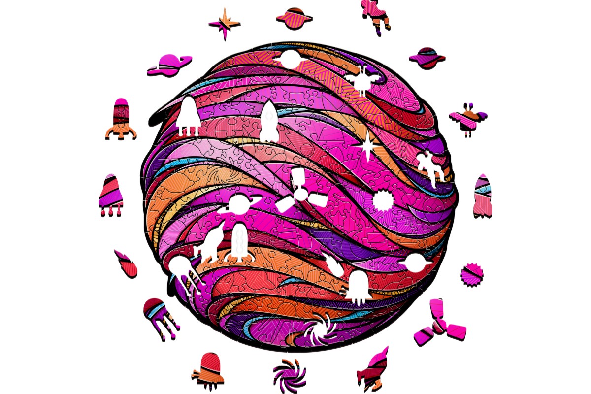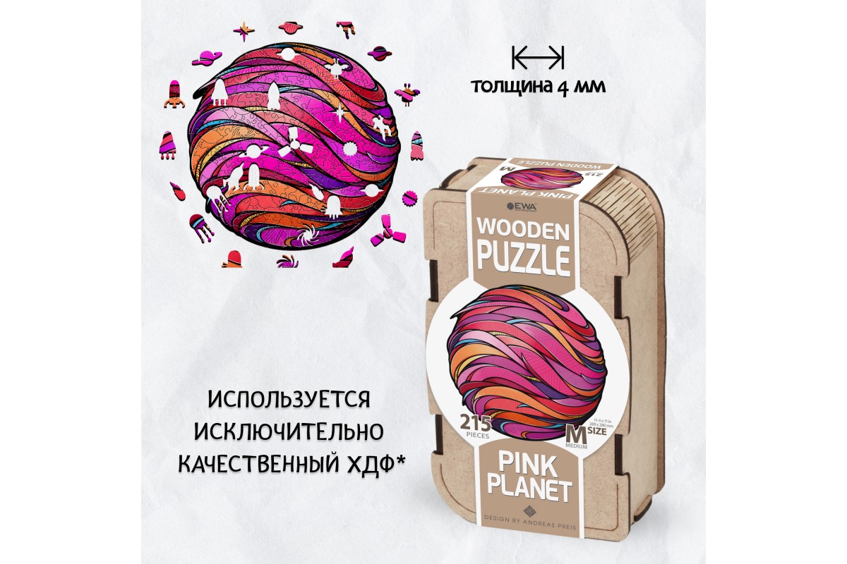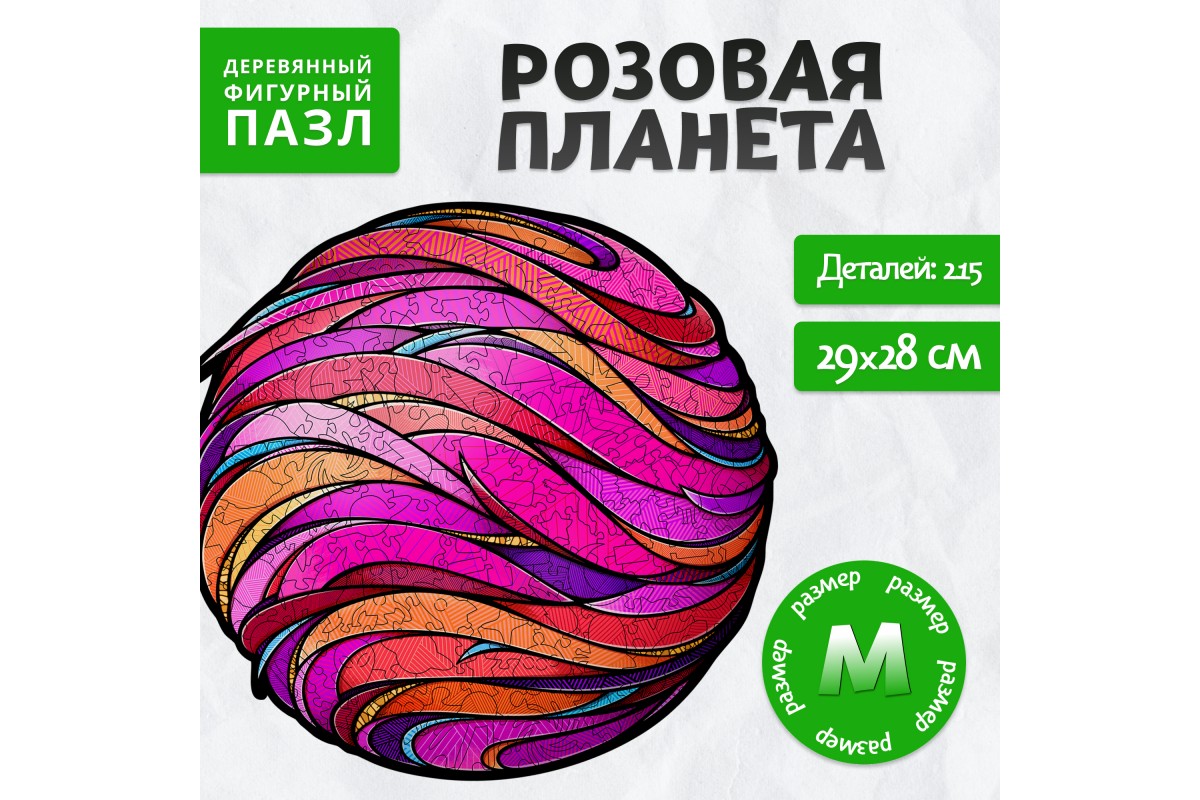 Деревянный пазл «Розовая планета» среднего размера 29х28 см – это захватывающий способ провести время с друзьями и семьей.