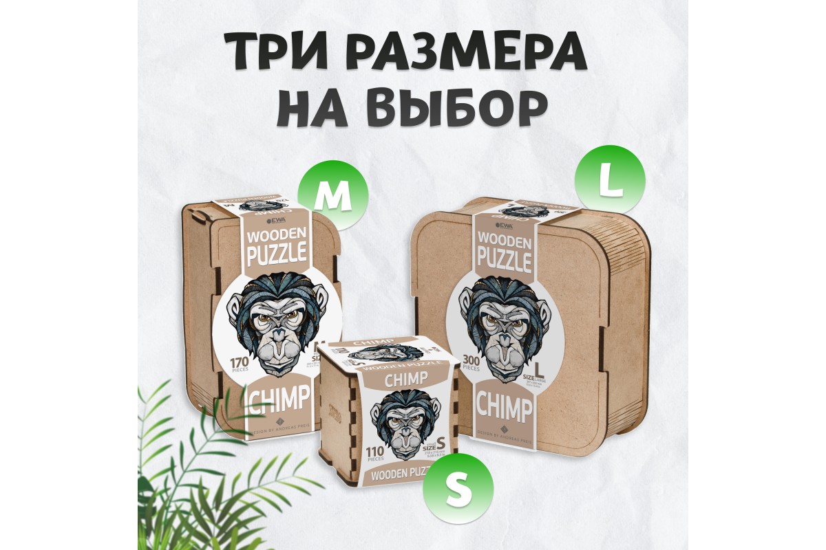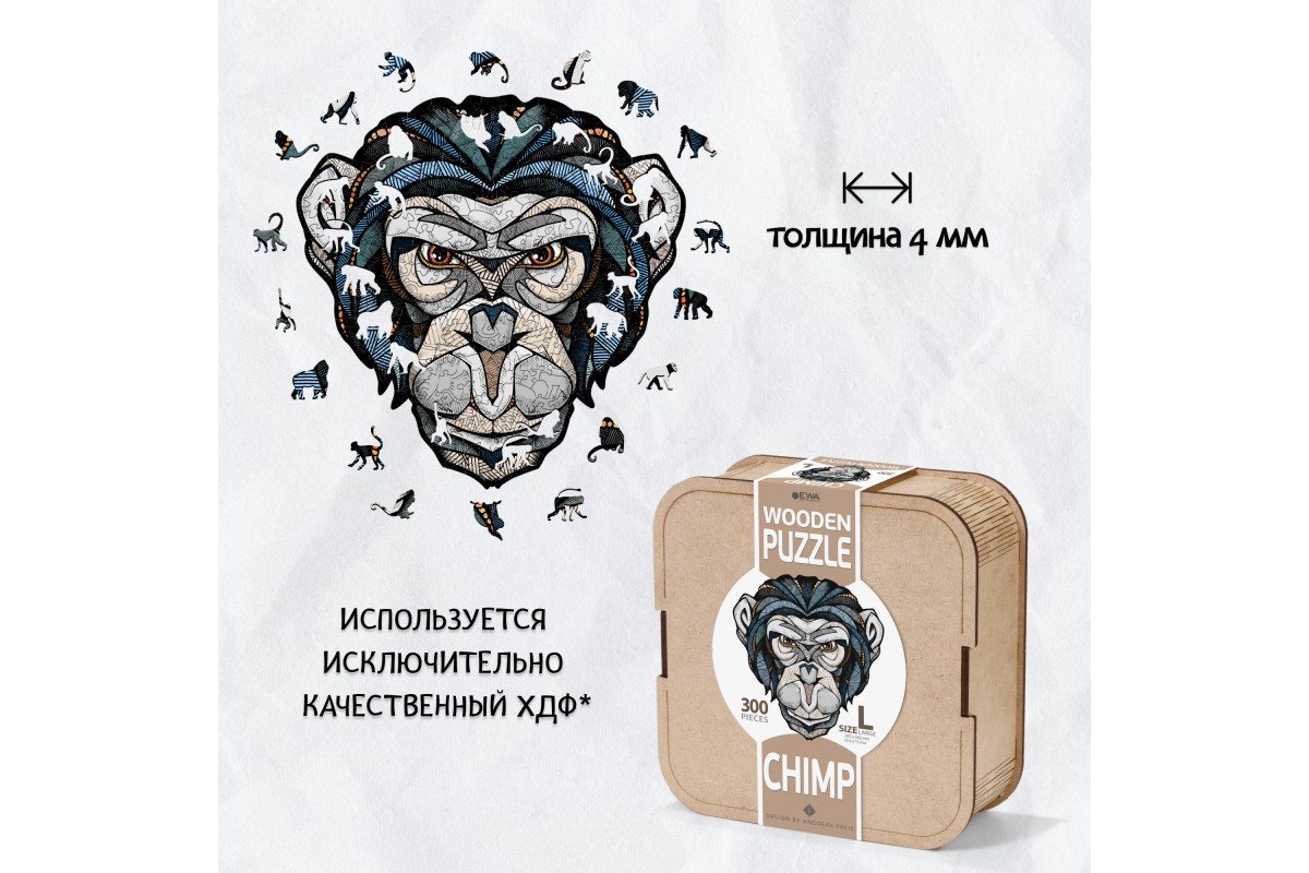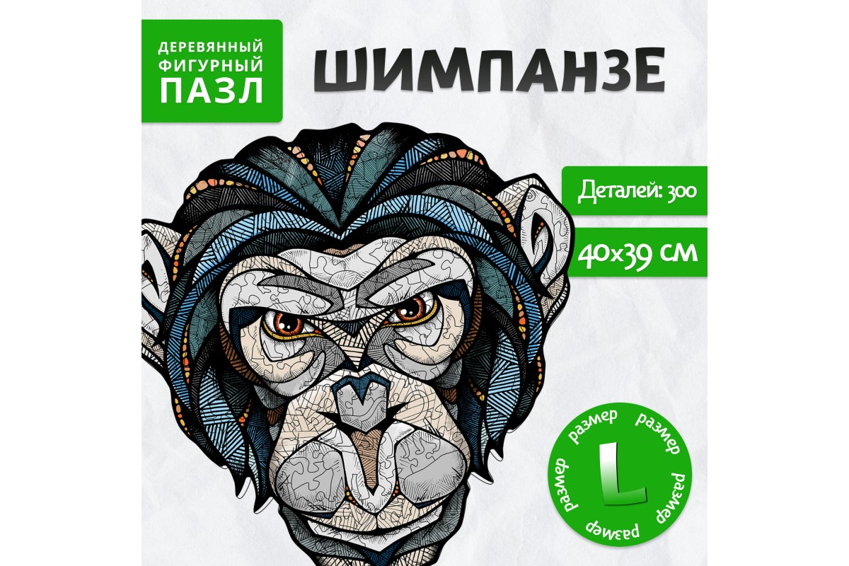 Деревянный пазл «Шимпанзе» большого размера 40x39 см – это захватывающий способ провести время с друзьями и семьей.