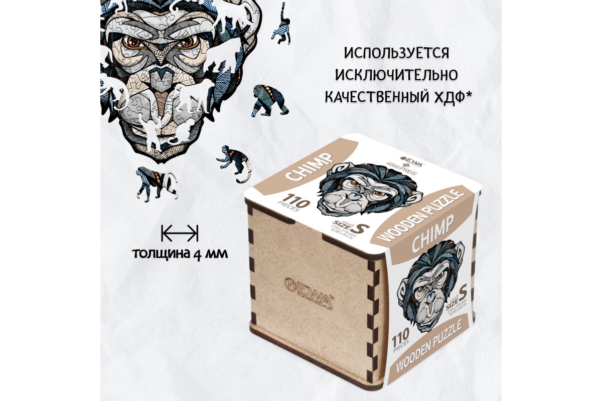 Деревянный пазл «Шимпанзе» 22x22 см – это захватывающий способ провести время с друзьями и семьей.