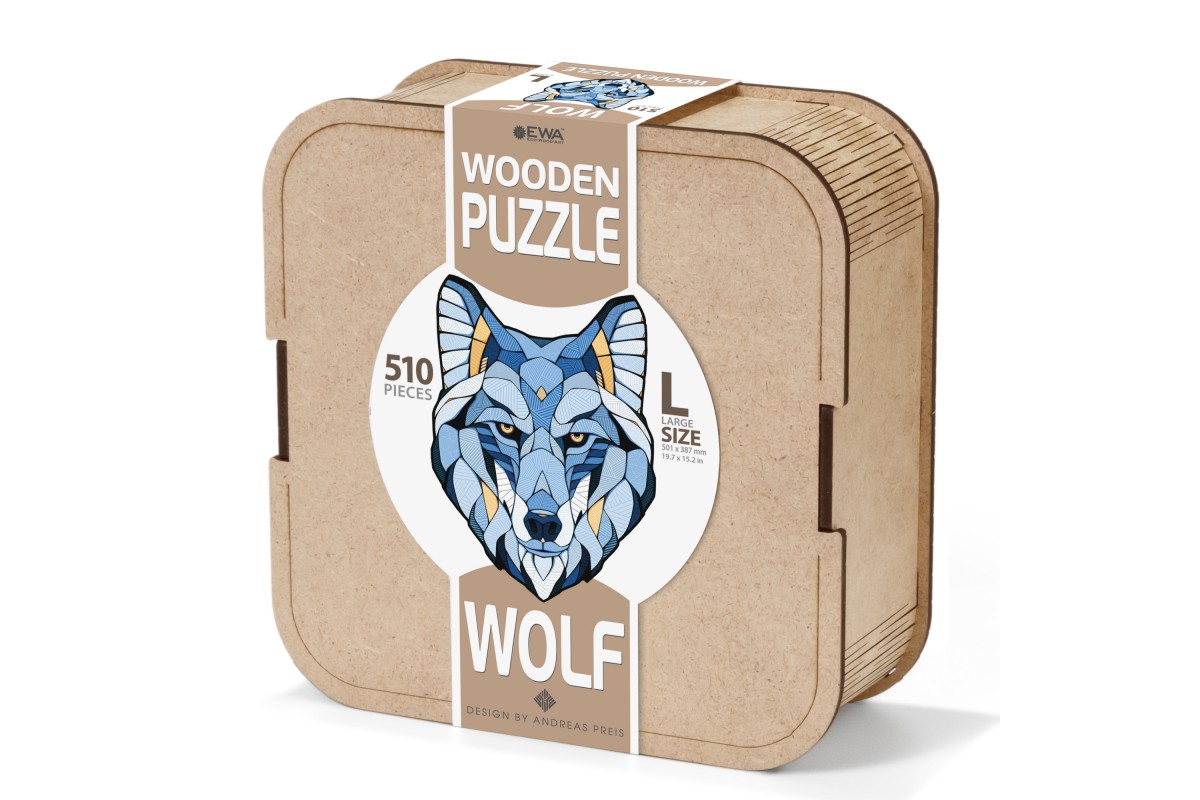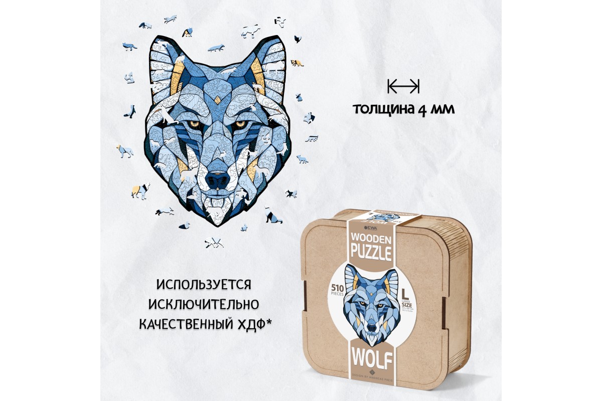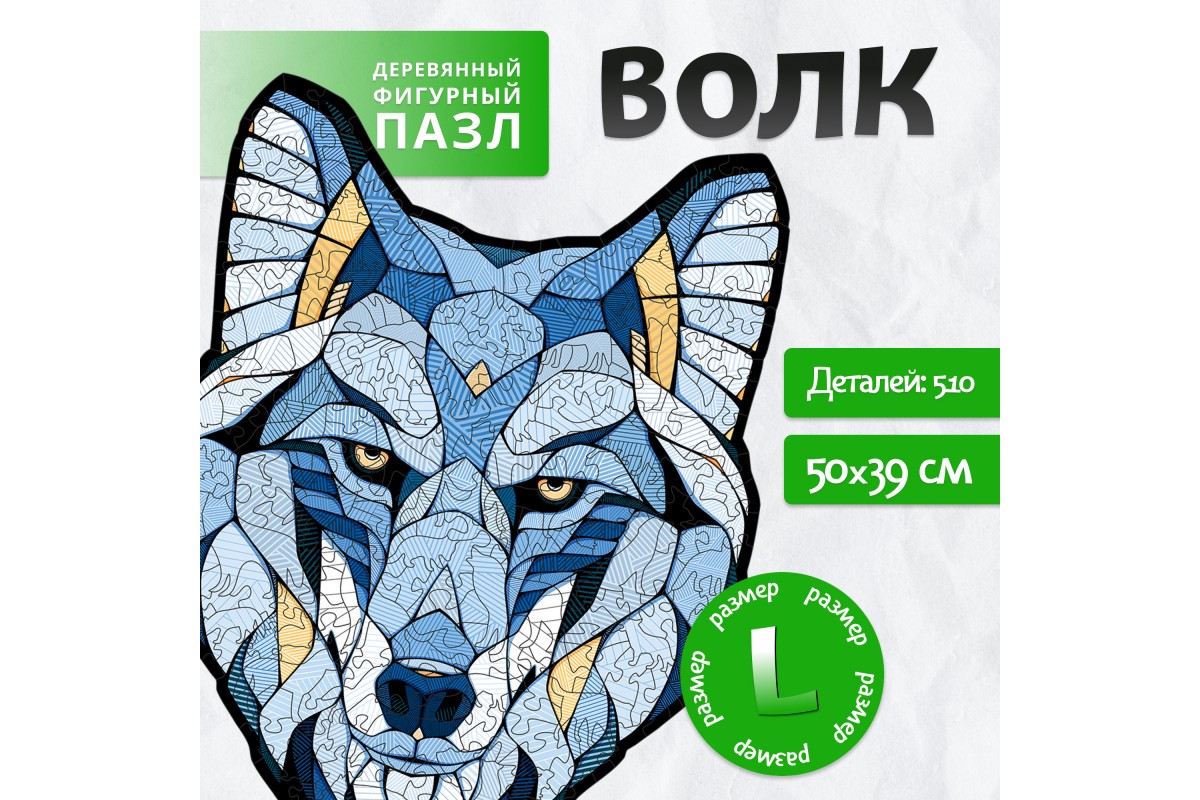 Деревянный пазл «Волк» большого размера 50x39 см – это захватывающий способ провести время с друзьями и семьей.