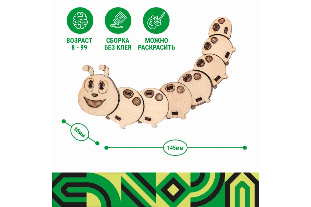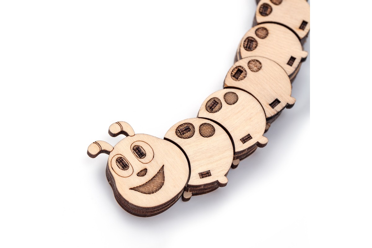 Деревянный конструктор ГУСЕНИЦА ТУТТА станет замечательным сувениром для мальчика и девочки и облегчит вам поиска подарка для ребенка. Ведь это не только антистресс гусеничка, но еще и необычная сборная модель в формате 3D пазла. Такой подарок станет отличным стимулом к творчеству и веселым времяпровождением. Гусеница прекрасно подойдет даже для малышей, так как она может трещать и приятна на ощупь.