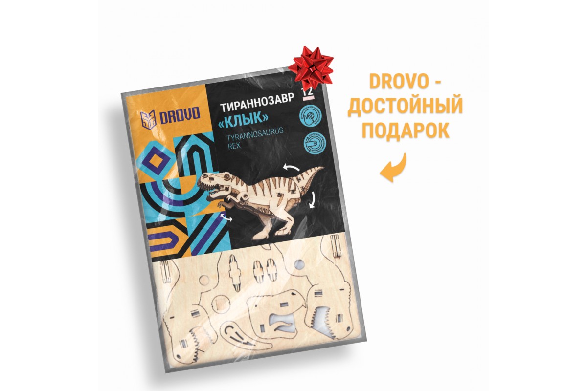 Аккуратно вырезанные детали фанерной модели DROVO без заусенцев обеспечивают гладкий материал и тщательно передают внешний вид героя.