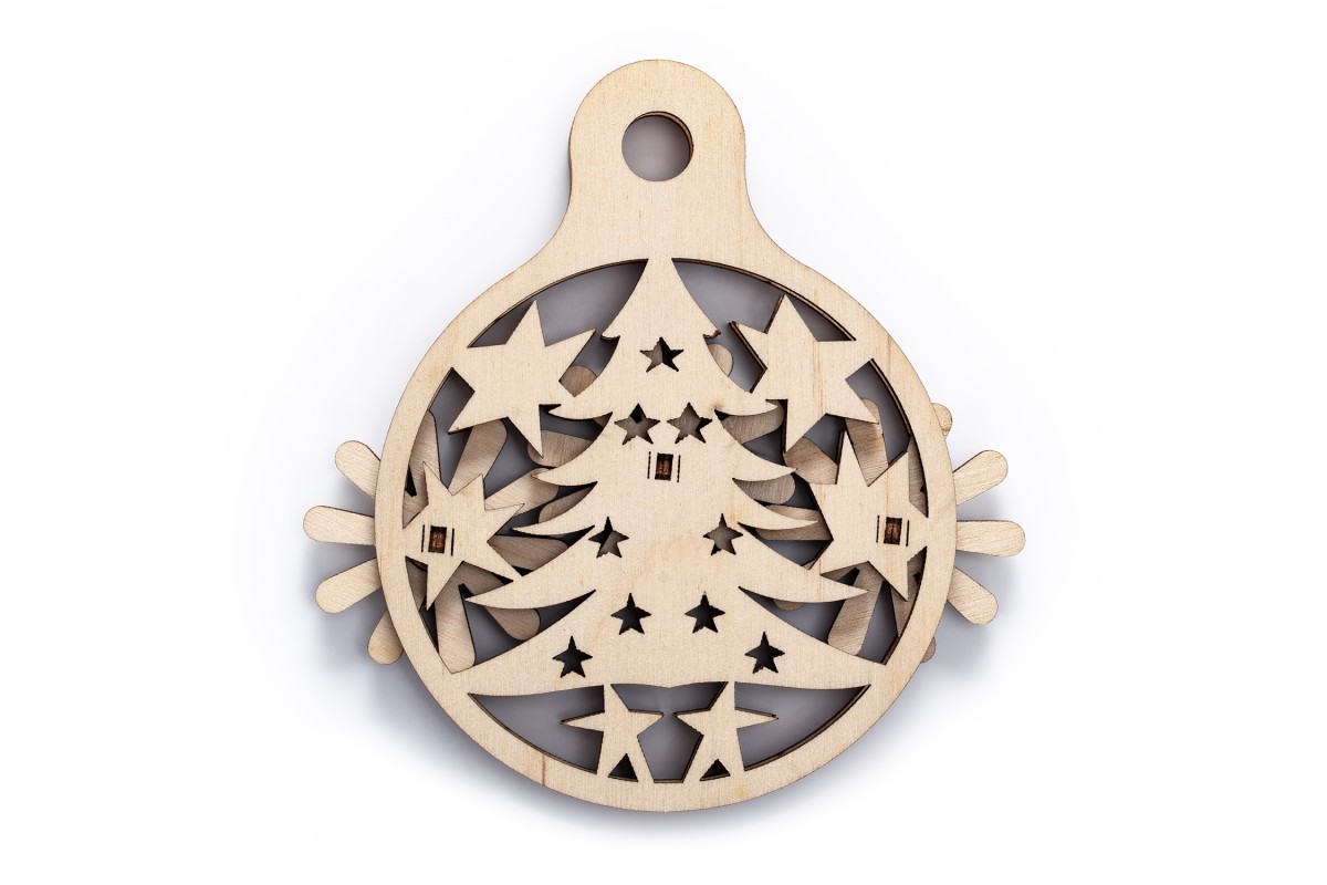 Новогоднюю игрушку можно раскрасить акриловыми красками, использовать технику «Декупаж» и другие виды декоративного творчества. Экологически чистый и качественный конструктор бережно отшлифован и безопасен.