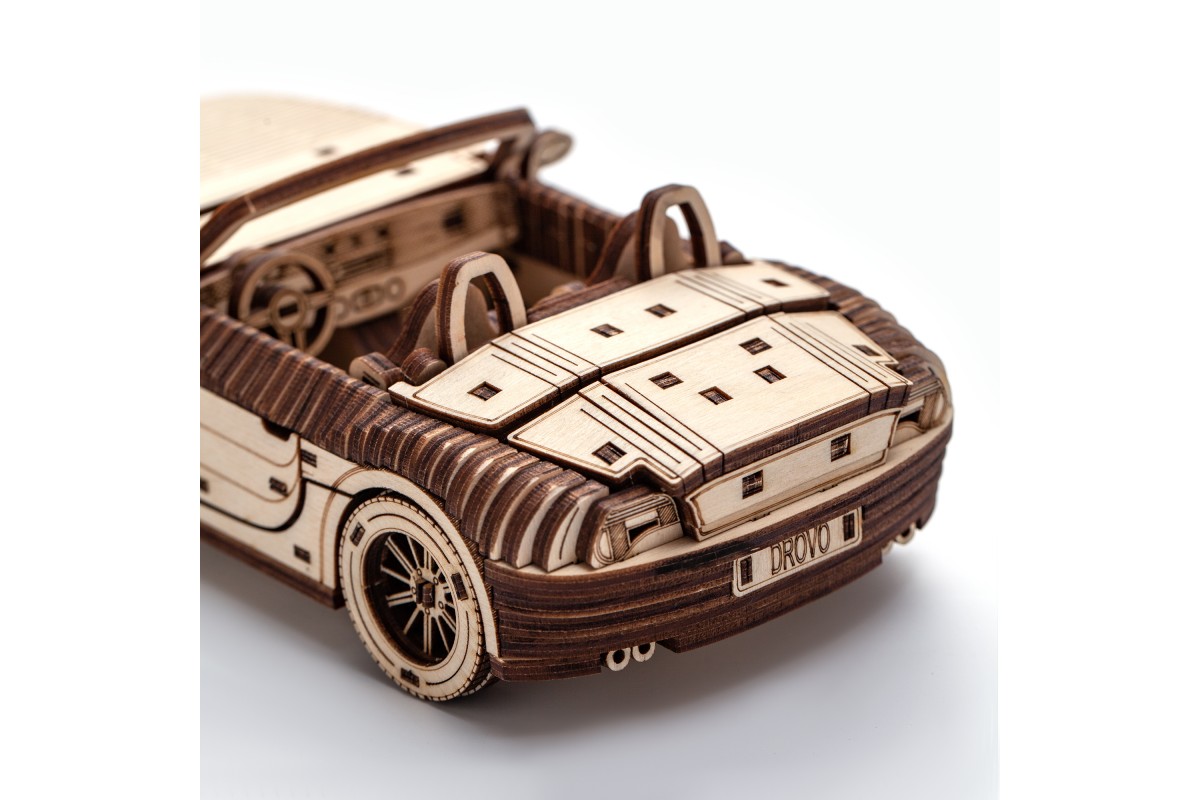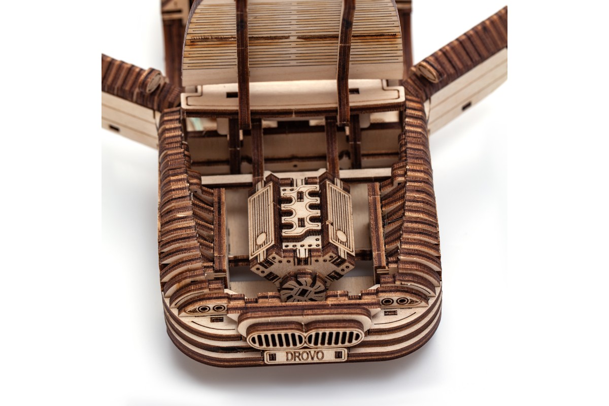 Аккуратно вырезанные детали фанерной модели DROVO без заусенцев обеспечивают гладкий материал и безопасное использование игрушки.