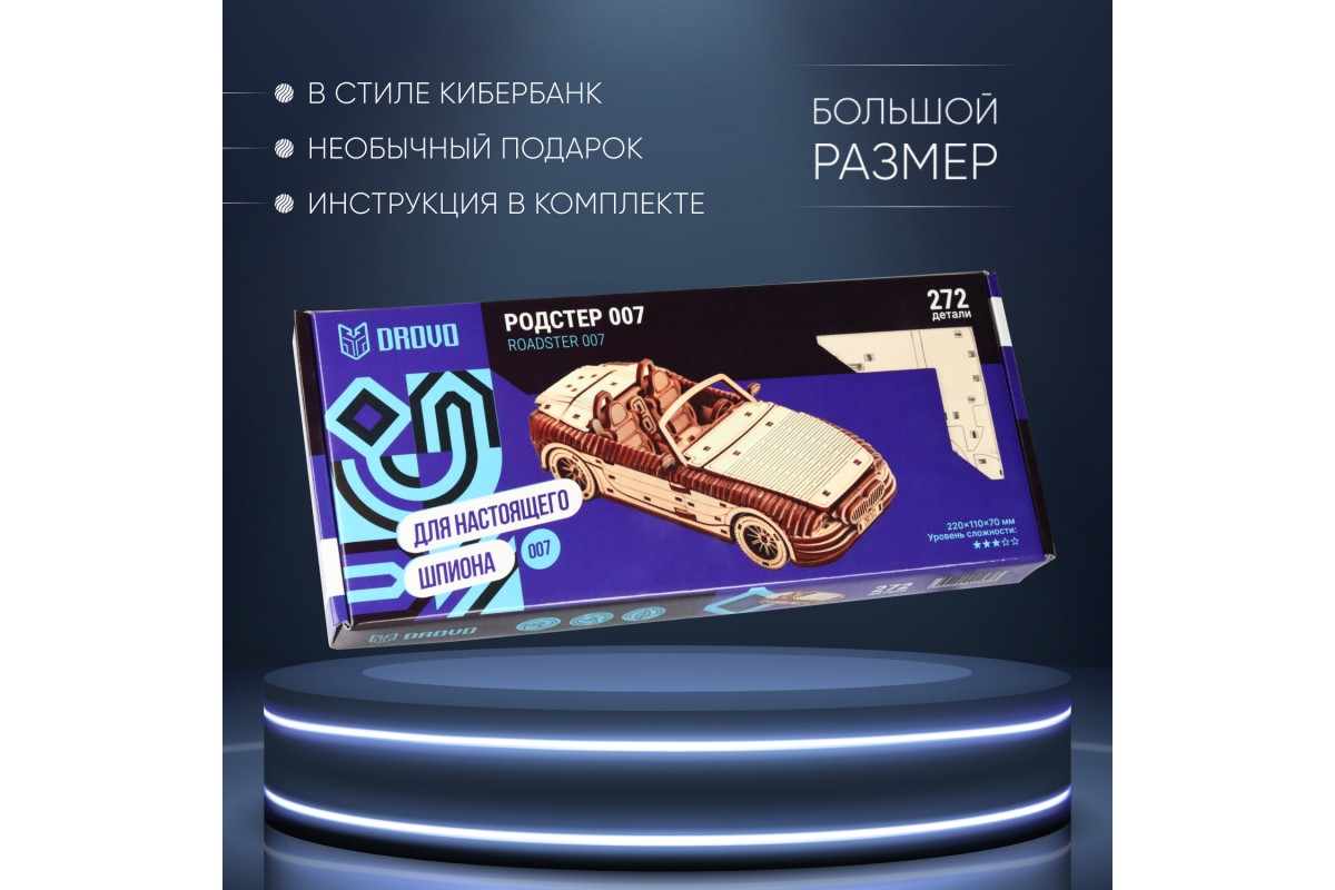 Деревянный конструктор автомобиль РОДСТЕР 007 станет отличным подарком для детей и взрослых, мечтающих почувствовать себя настоящим шпионом. Такой конструктор подойдет не только для мальчиков, но и для настоящих мужчин.