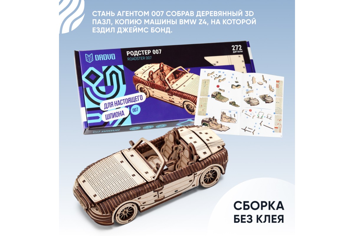 Стань Агентом 007 собрав деревянный 3D пазл, копию машины BMW Z4, на которой ездил Джеймс Бонд.