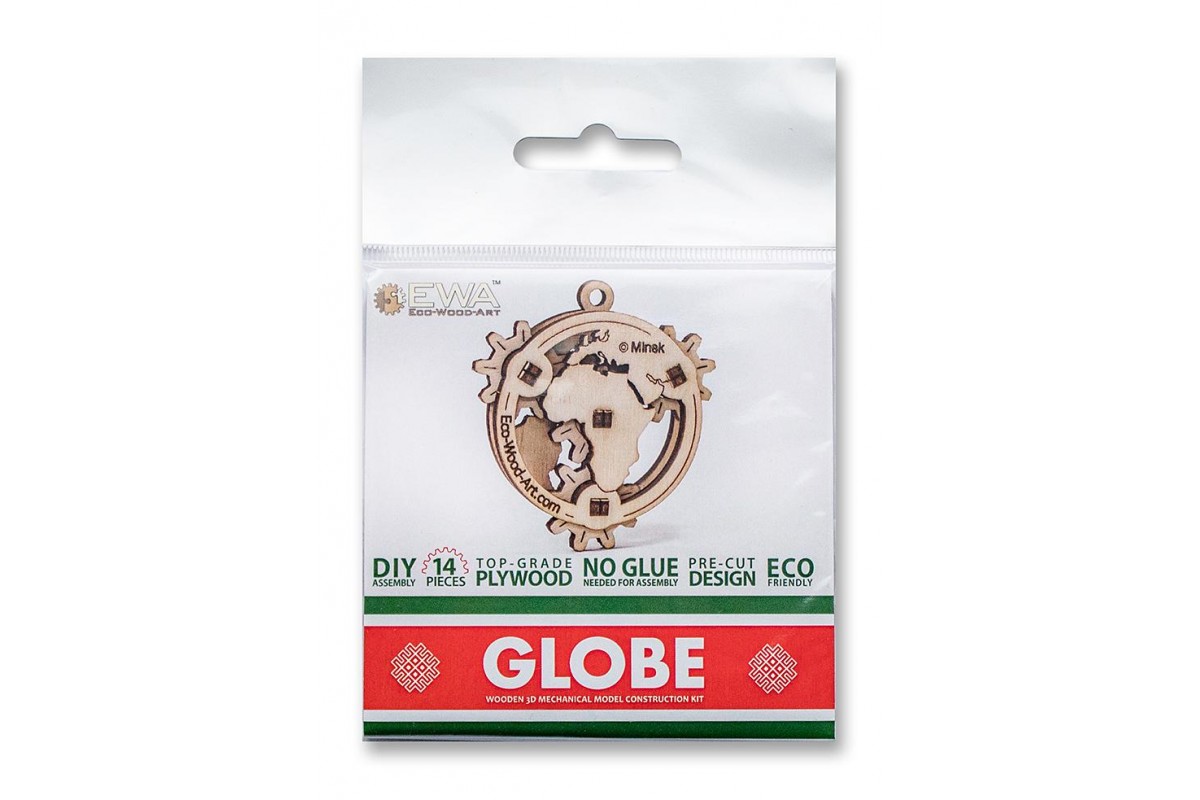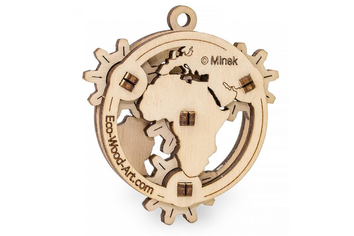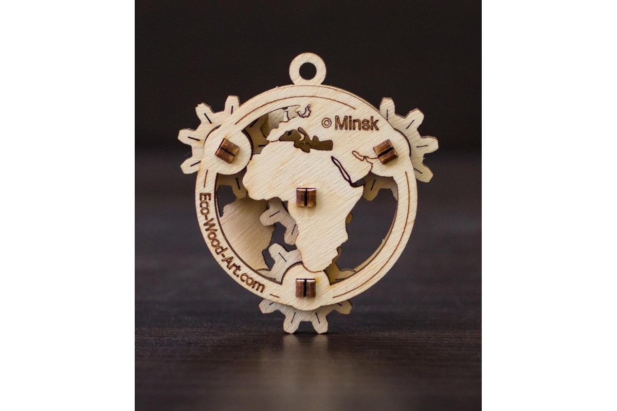 Eco Wood Art Эвик: Глобус - миниатюрный механический 3D-конструктор, игрушка - фиджет. Простая, интересная и быстрая сборка, подвижные элементы и возможность использовать готовую модель в качестве предмета декора, настольного сувенира, брелока, украшения в салоне автомобиля и предмета коллекционирования выделяют эту модель в особый ряд мини-конструкторов с мультивозможностями их использования.