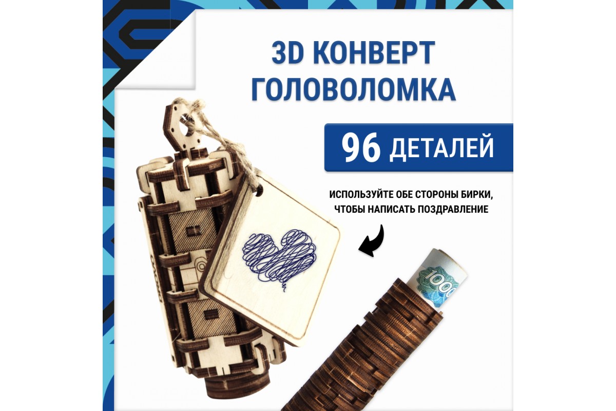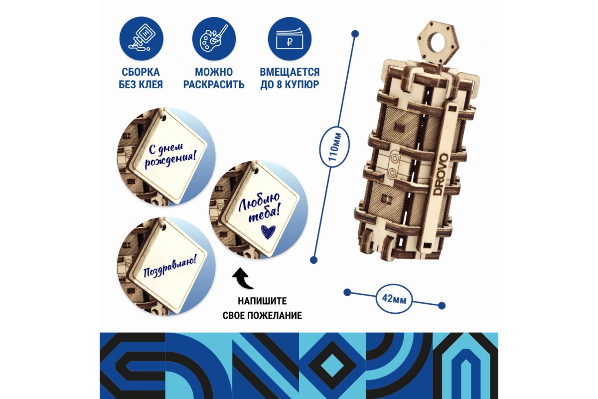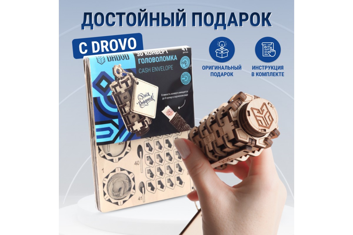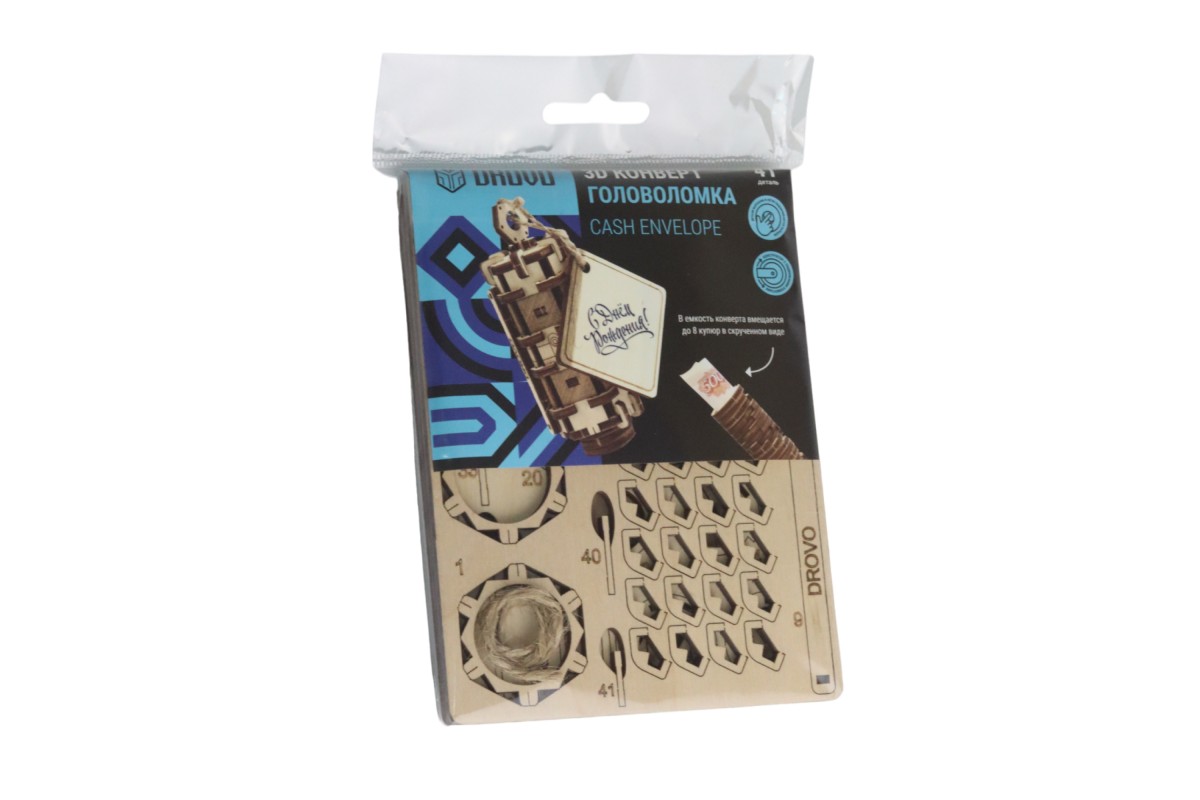 Деревянный конструктор DROVO Конверт для денег - прекрасный подарок для ребенка и взрослого человека, который любит собирать головоломки.