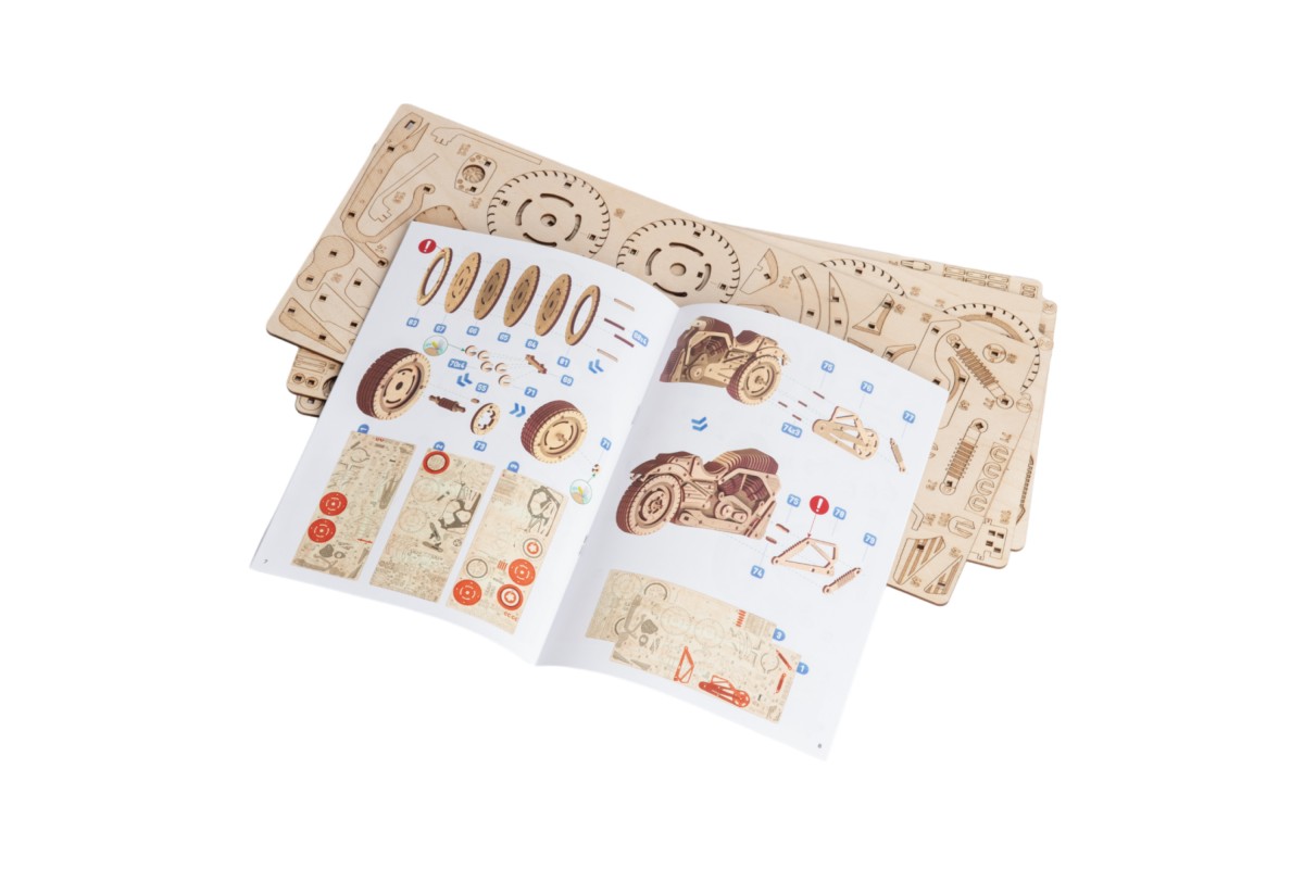 Вы приятно проведёте время с детьми за сборкой конструктора из дерева, а готовая модель мотоцикла станет стильным украшением интерьера, особенно, если раскрасить ее акриловыми красками. Конструктор деревянный для мальчиков и девочек и способствует развитию мелкой моторики и предметному моделированию, а также воображению, пространственному мышлению и логики.