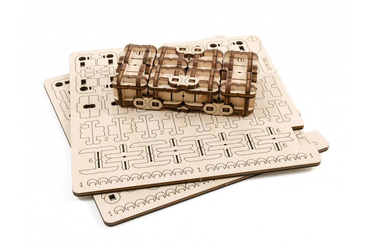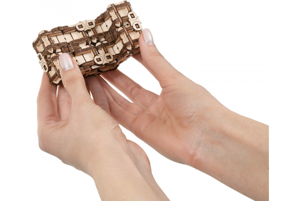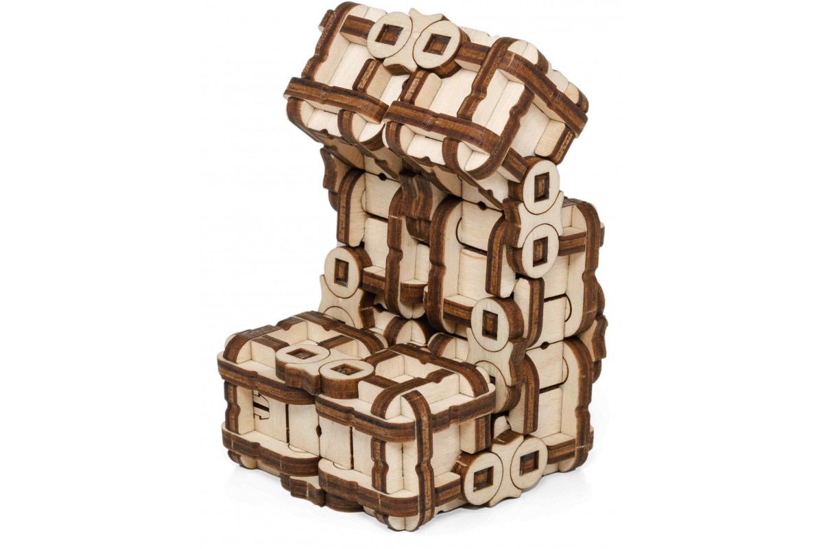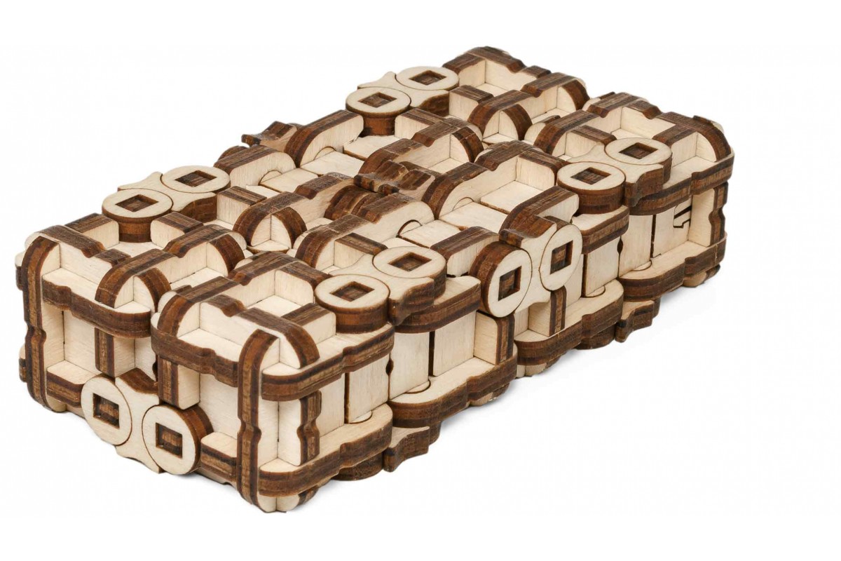 Деревянная головоломка Метаморфик куб — это игрушка из фанеры, которую можно собрать самому. Она состоит из 8 одинаковых деревянных кубиков. Блоки соединяются друг с другом с помощью креплений, которые расположены в углах каждого куба.