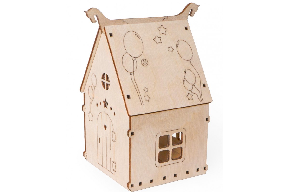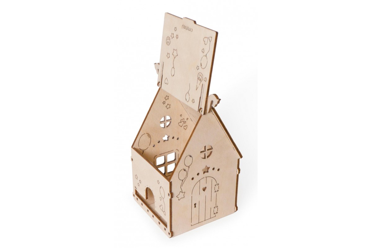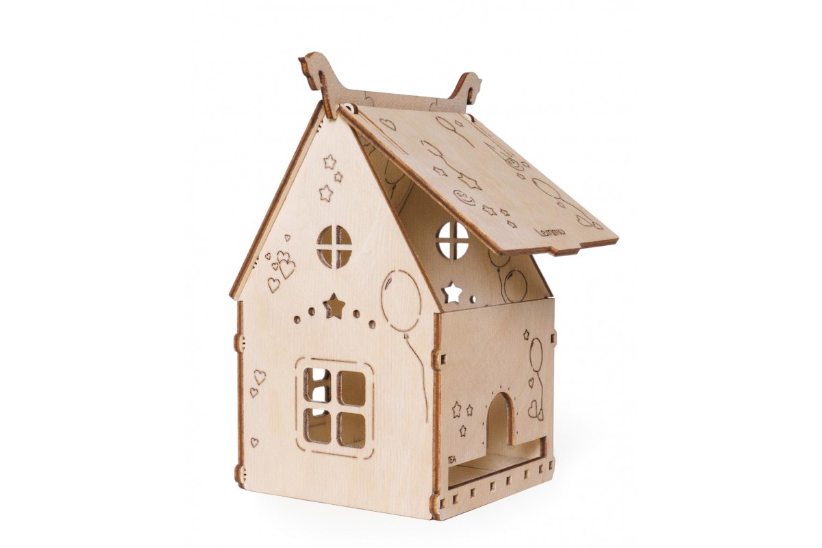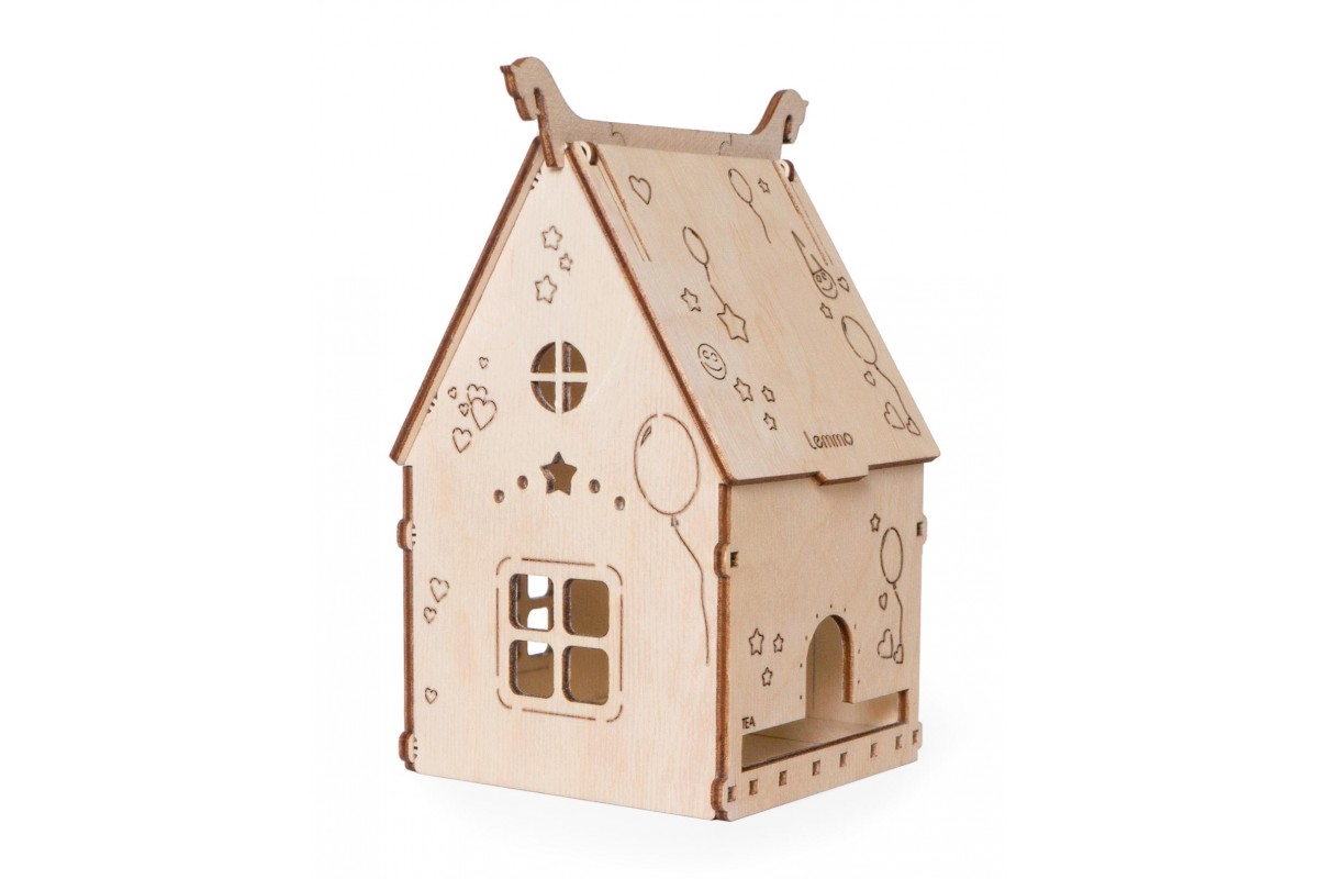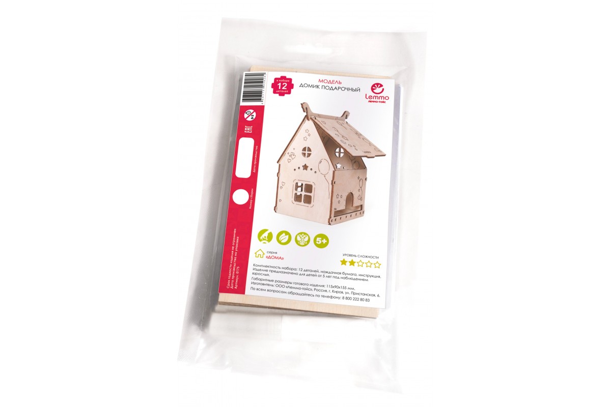Деревянный конструктор и сборная модель подарочного домика "Lemmo". Отличная модель для рукоделия, подарка или декорирования. Используйте в игре, на кухне или в мастер-классах по фанере.