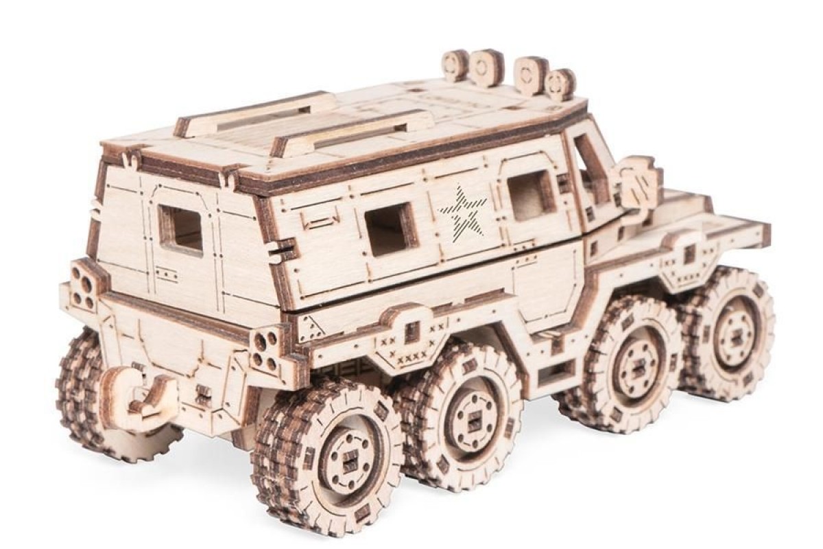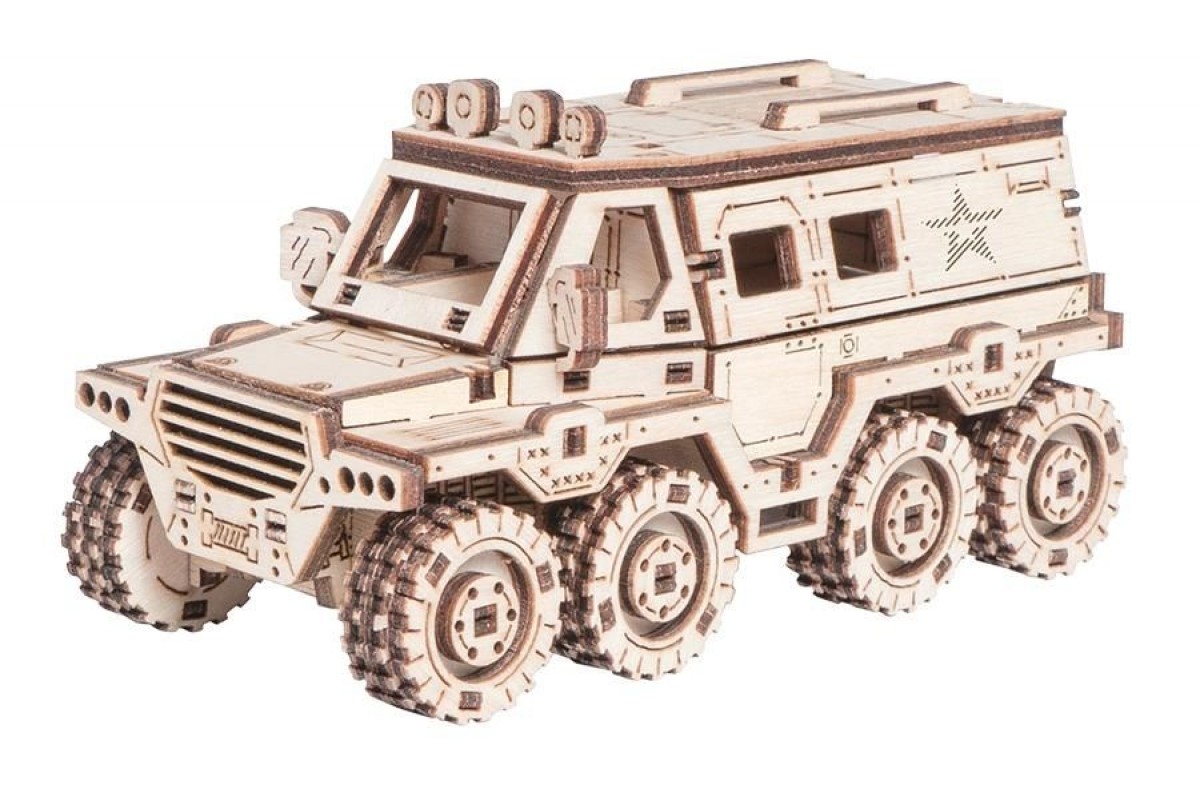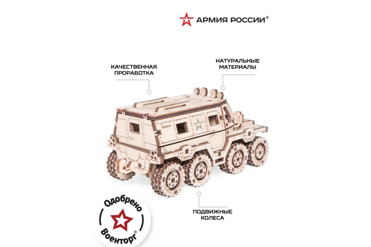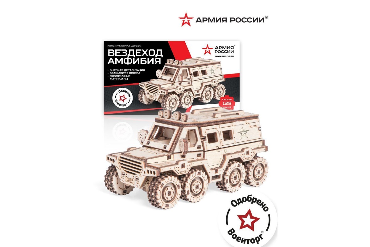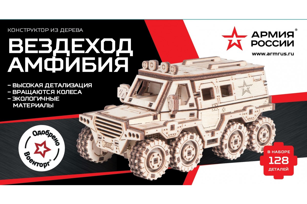 Деревянный конструктор и сборная модель из дерева Автомобиль, Внедорожник, Вездеход Амфибия "Армия России" для детей и взрослых.