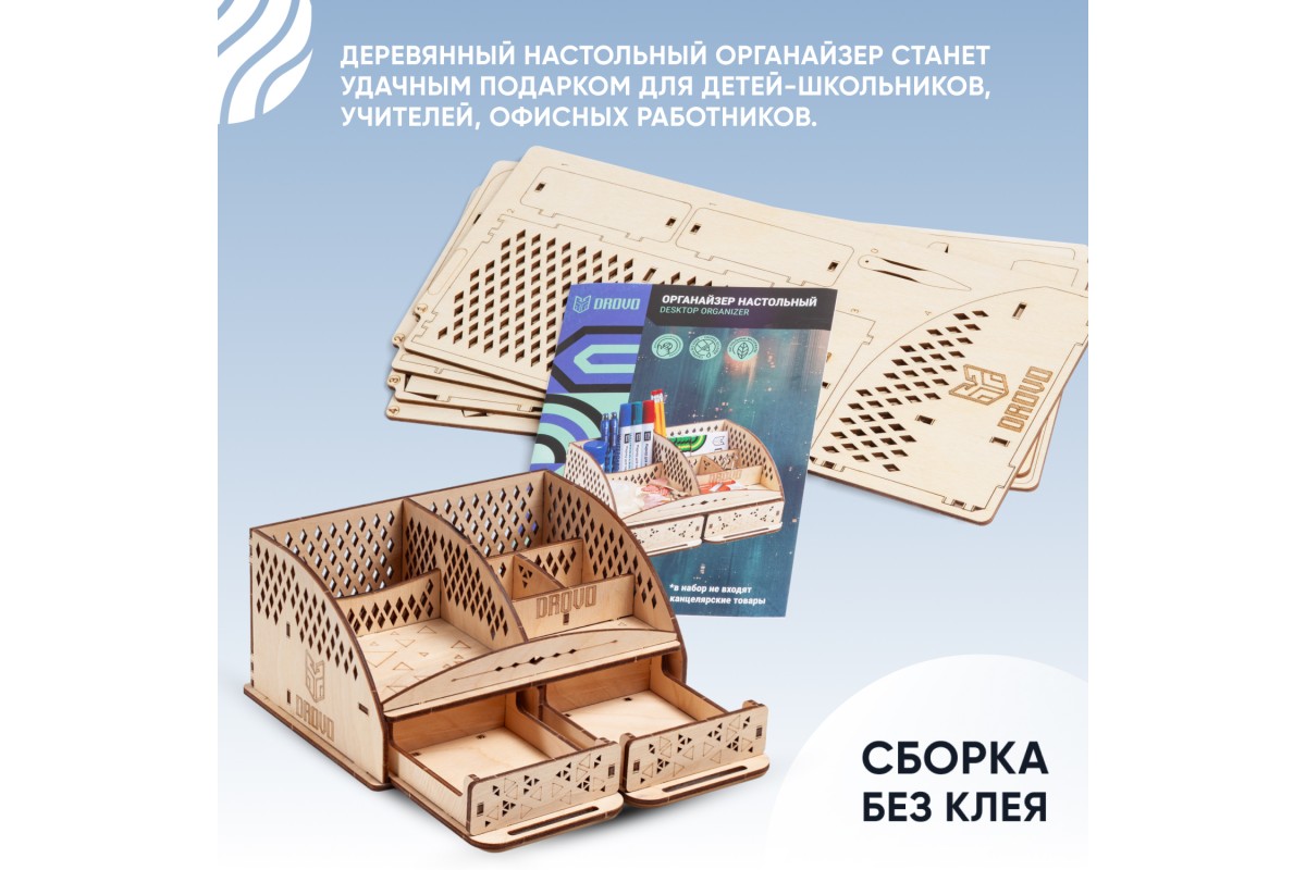 Деревянный настольный органайзер станет удачным подарком для детей-школьников, учителей, офисных работников.