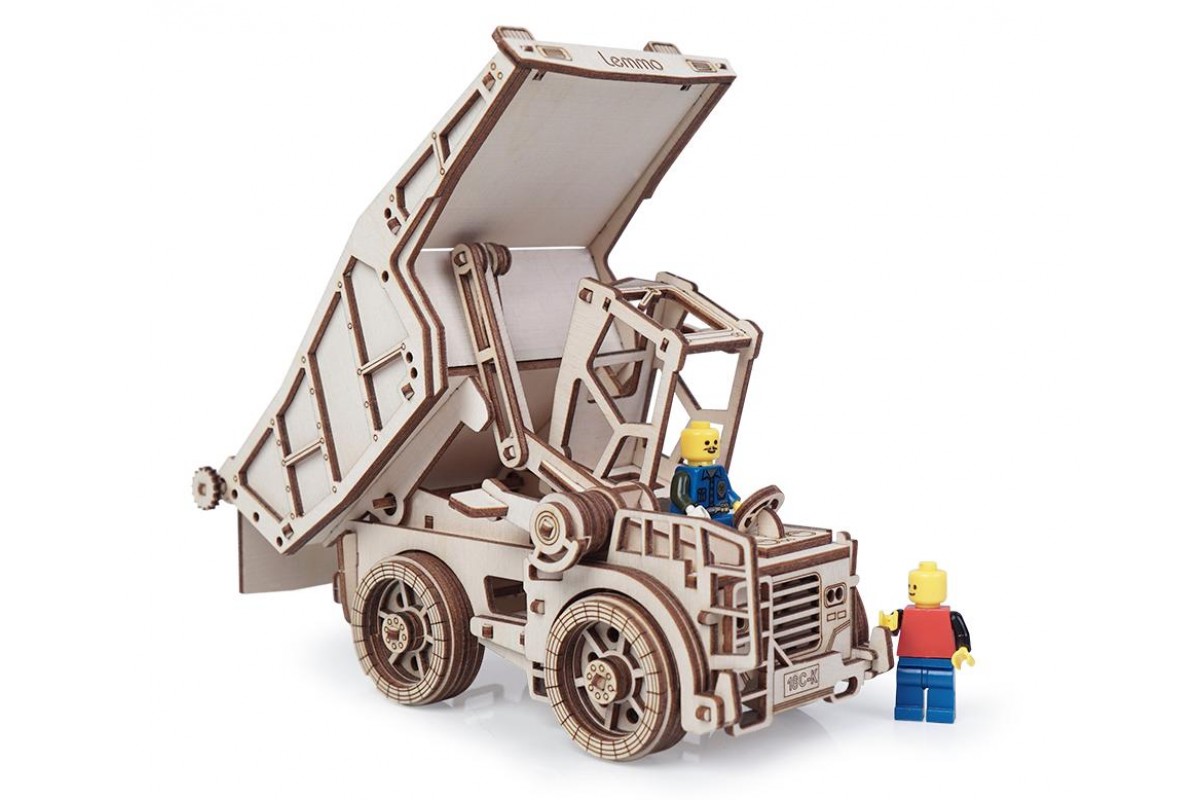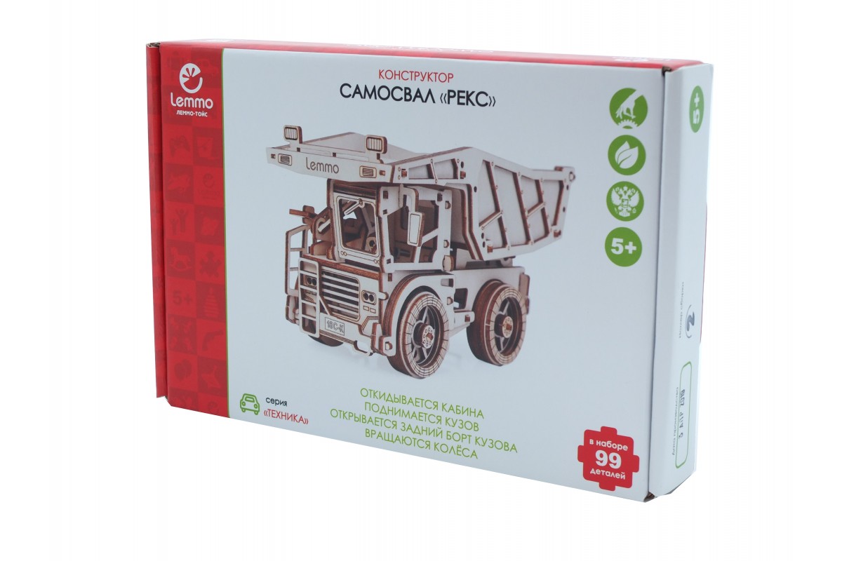 Деревянный конструктор самосвал "Рекс" от компании "Леммо" - это отличный вариант расширить возможности для игры в конструкторы и человечков Лего. Для начала можно себя почувствовать инженером и собрать самосвал из множества деревянных деталей. Потом его можно раскрасить любыми красками, карандашами или фломастерами, а уже потом начать увлекательную игру. У собранного конструктора от Леммо крутятся колеса, откидывается кабина, открывается задний борт кузова и сам кузов конечно поднимается. В кузов можно загрузить детальки Лего и начать стройку здания.