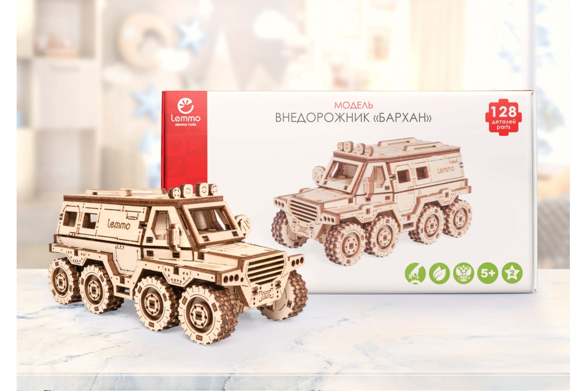Деревянный конструктор Lemmo Внедорожник Бархан - это сборная модель, которая станет отличным подарком для детей и взрослых.