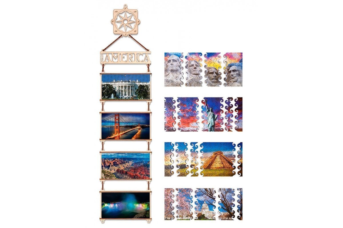 Новые пазлы от команды EWA Eco-Wood-Art — двусторонние пазлы. Панели-головоломки EWA имеют по 4 изображения с обеих сторон, что означает, что вам будет интереснее их собирать. Каждый набор содержит 4 двухсторонних пазла уникальной формы с изображением определенной достопримечательности каждой части света. После сборки вы получаете уникальную интерьерную панель, которую можно повесить на стену. Соберите все 6 наборов головоломок и получите огромную интерьерную панель с величайшими пейзажами мира, выполненную командой EWA Eco-Wood-Art.