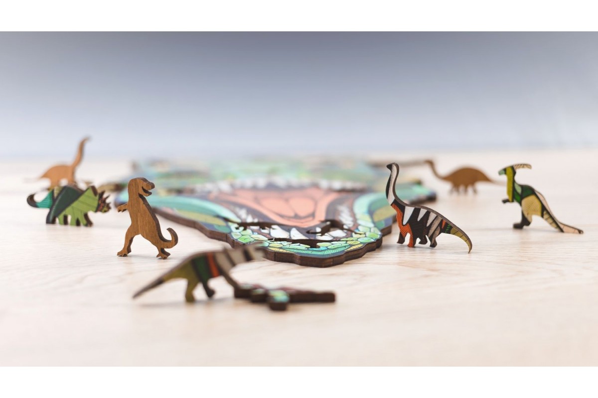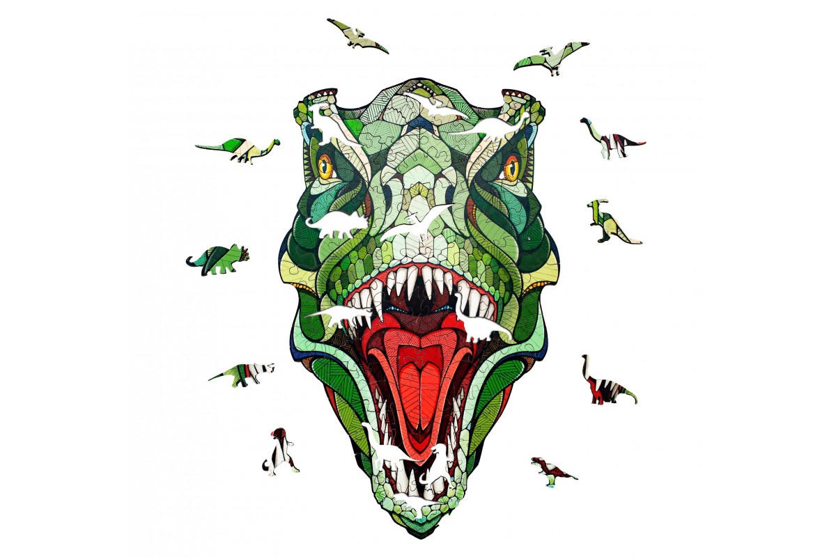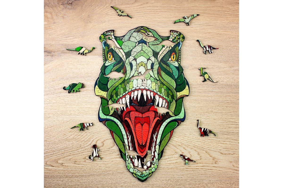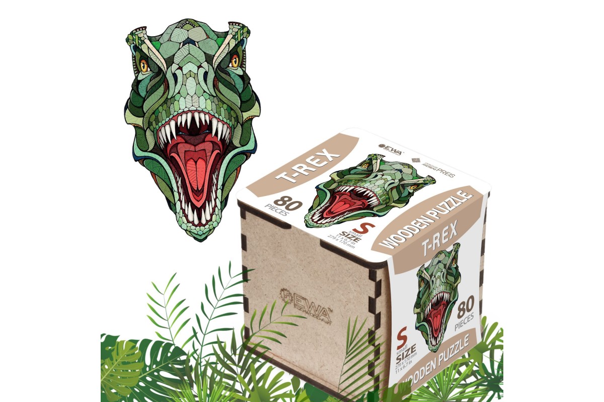 Деревянный пазл для детей и взрослых, фигурный пазл с уникальными деталями Eco Wood Art "Динозавр ТИ РЕКС" размера S - это настоящая головоломка, ваша ловкость может пригодиться в сборке.