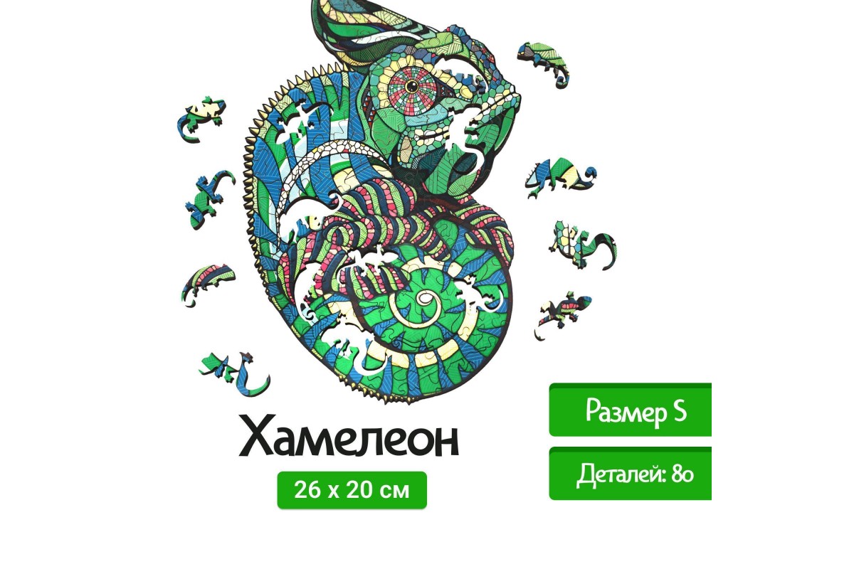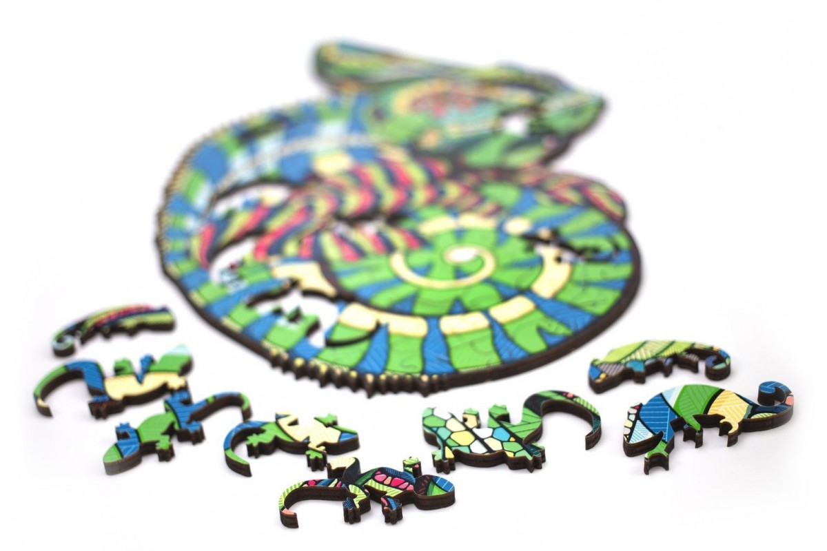Деревянный пазл для детей и взрослых, фигурный пазл с уникальными деталями Eco Wood Art "Хамелеон" размера S - это настоящая головоломка, ваша ловкость может пригодиться в сборке.