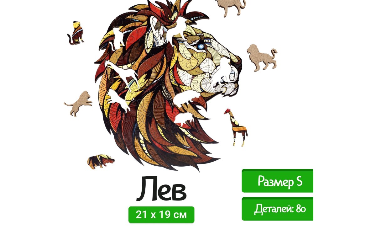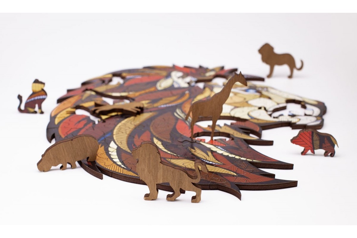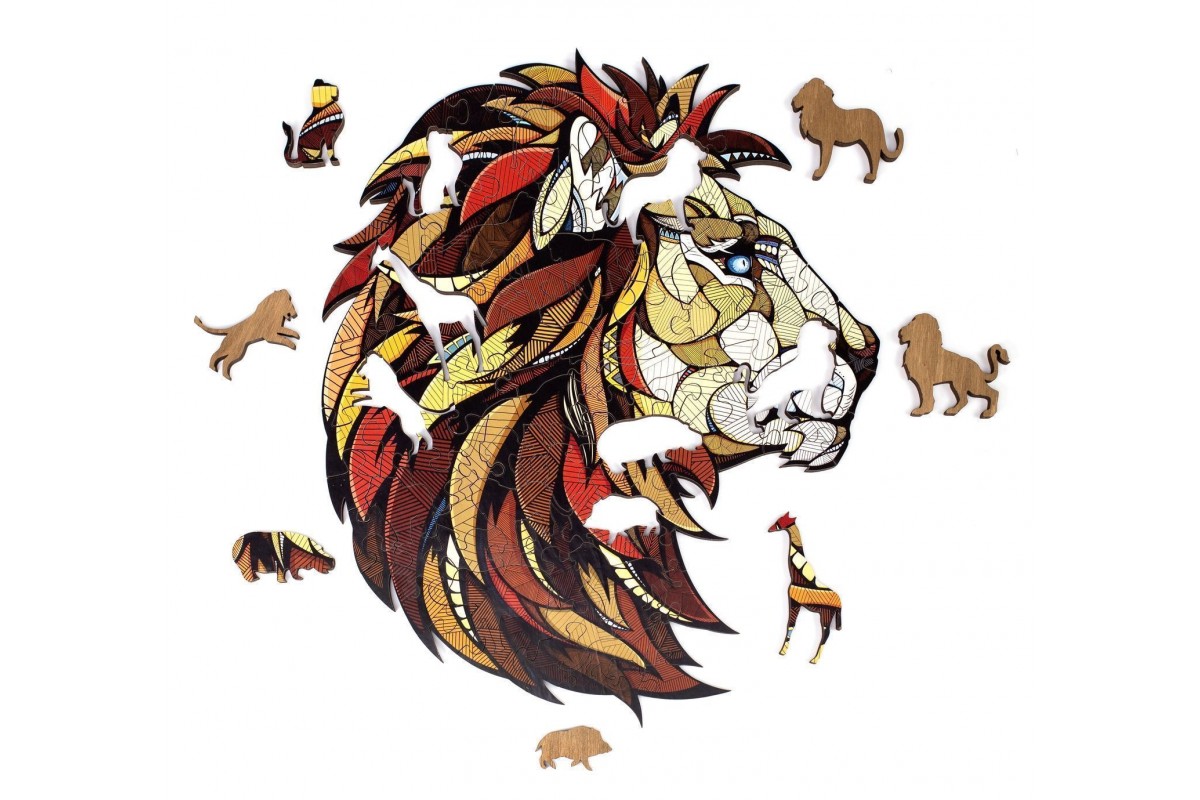 Деревянный пазл для детей и взрослых, фигурный пазл с уникальными деталями Eco Wood Art "Лев" размера S - это настоящая головоломка, ваша ловкость может пригодиться в сборке.