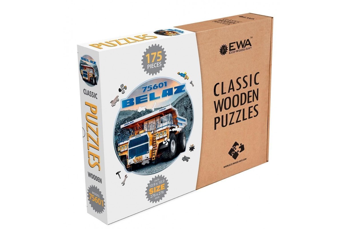 Деревянный пазл для детей и взрослых, фигурный пазл с уникальными деталями Eco Wood Art "Самосвал Белаз 75601" - это настоящая головоломка, ваша ловкость может пригодиться в сборке.