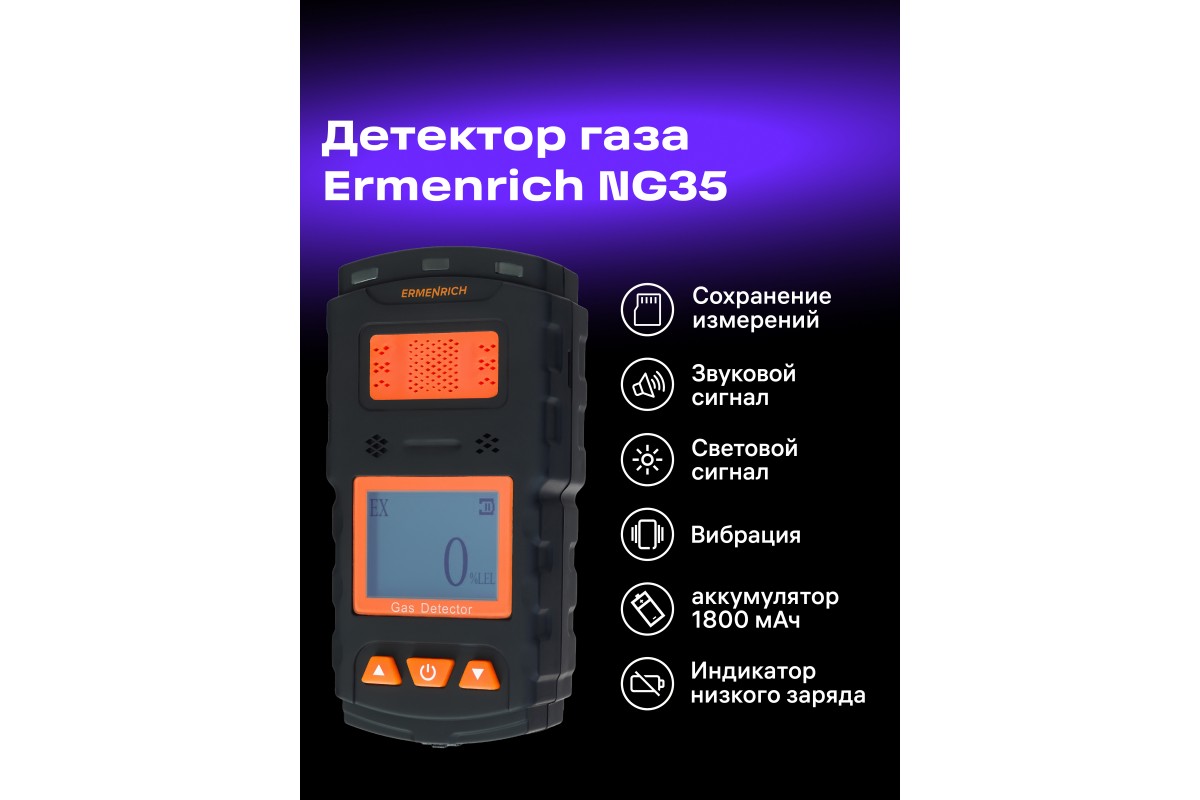 Детектор газа Ermenrich NG35 предназначен для определения концентрации горючих и взрывоопасных газов в воздухе, обеспечивая безопасность в промышленных и бытовых помещениях. Чувствительный сенсор определяет концентрацию природного газа, метана, этана, пропана, бутана. Работает прибор в диапазоне 0–100% LEL. Настраивать порог срабатывания тревоги можно самостоятельно.