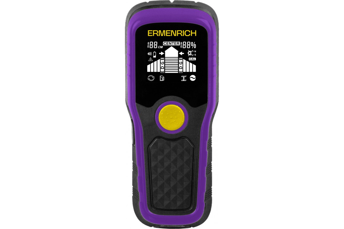 Ermenrich Ping SM40 – компактный детектор скрытых коммуникаций, сочетающий удобство бытового прибора с точностью профессионального инструмента. Устройство за считаные секунды различает древесину, металл и активные кабели, сразу выводя достоверные данные на контрастный ЖК-экран. Особенность модели – автоматический выбор режима работы, благодаря чему не нужно вручную подбирать нужный, все управление осуществляется всего одной кнопкой. Во время работы прибор автоматически определяет самый сильный сигнал, а на дисплее отображается значок соответствующего режима обнаружения.