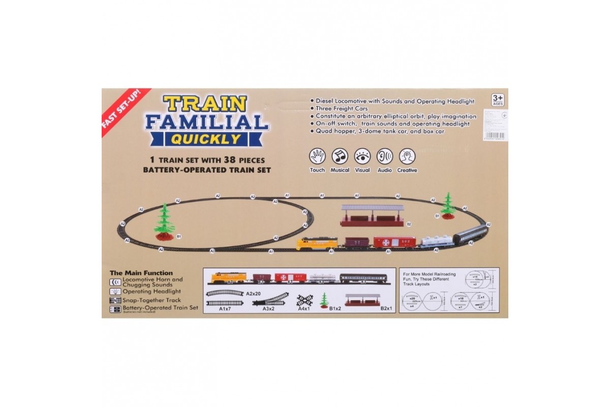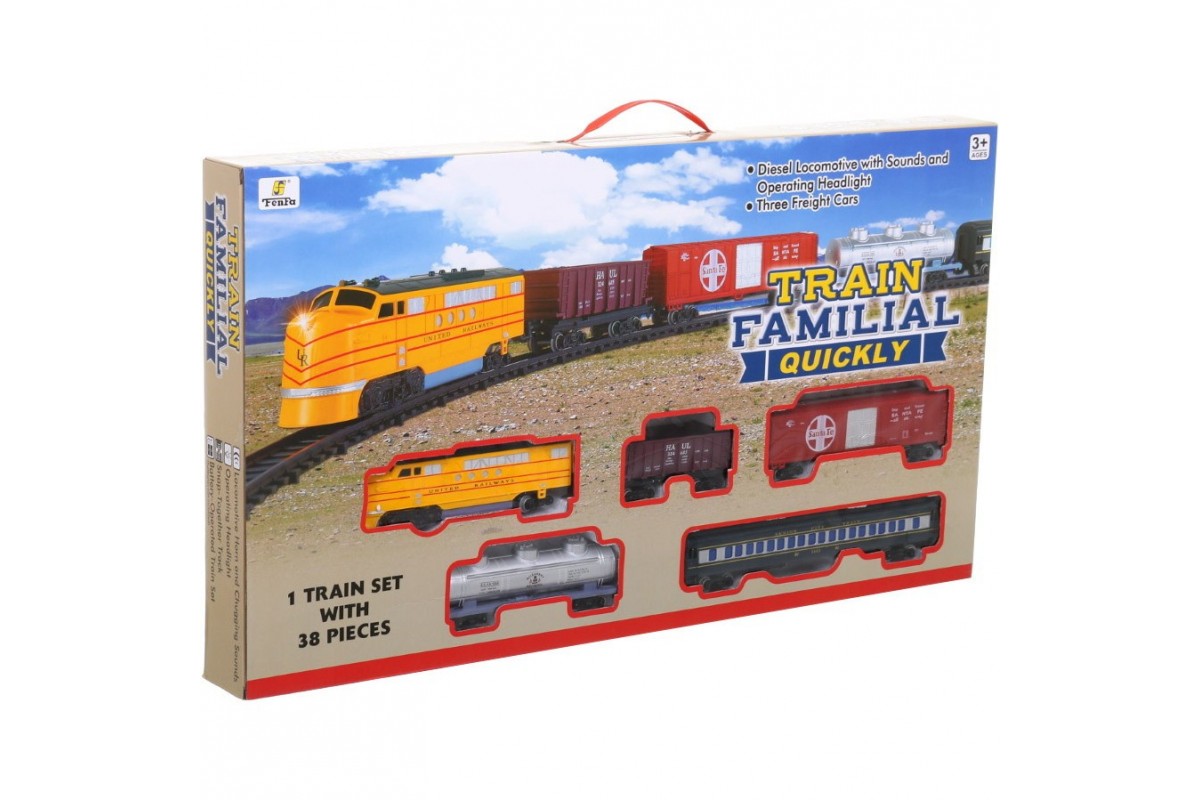 Детская железная дорога Fenfa Train Familial Quickly (свет, звук, длина полотна 6,7 м) - 1600A-8B – это великолепный подарок для мальчиков всех возрастов. Ведь это отличный современный локомотив с прицепным составом и дорогой, которая собирается из отдельных деталей.