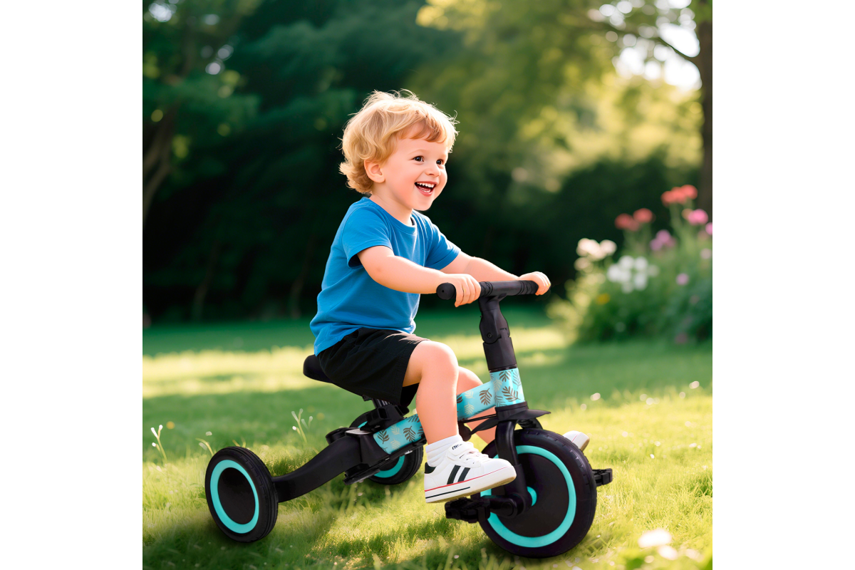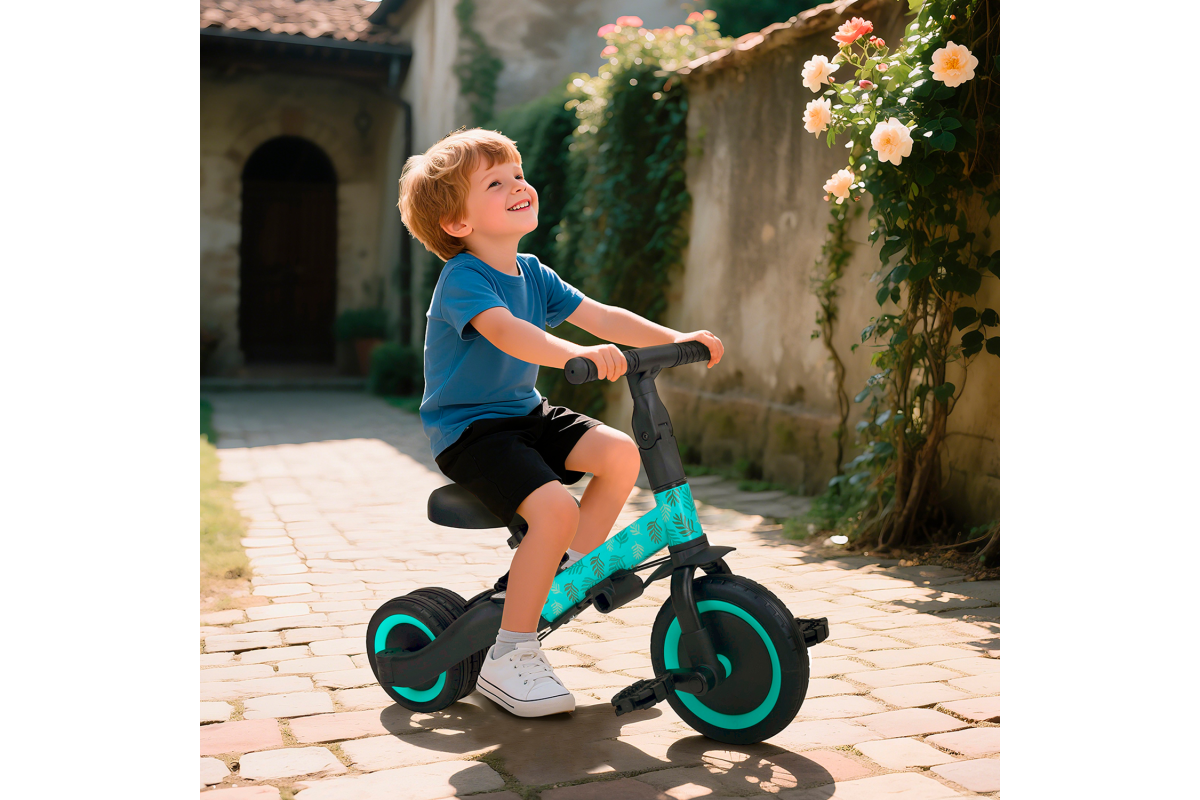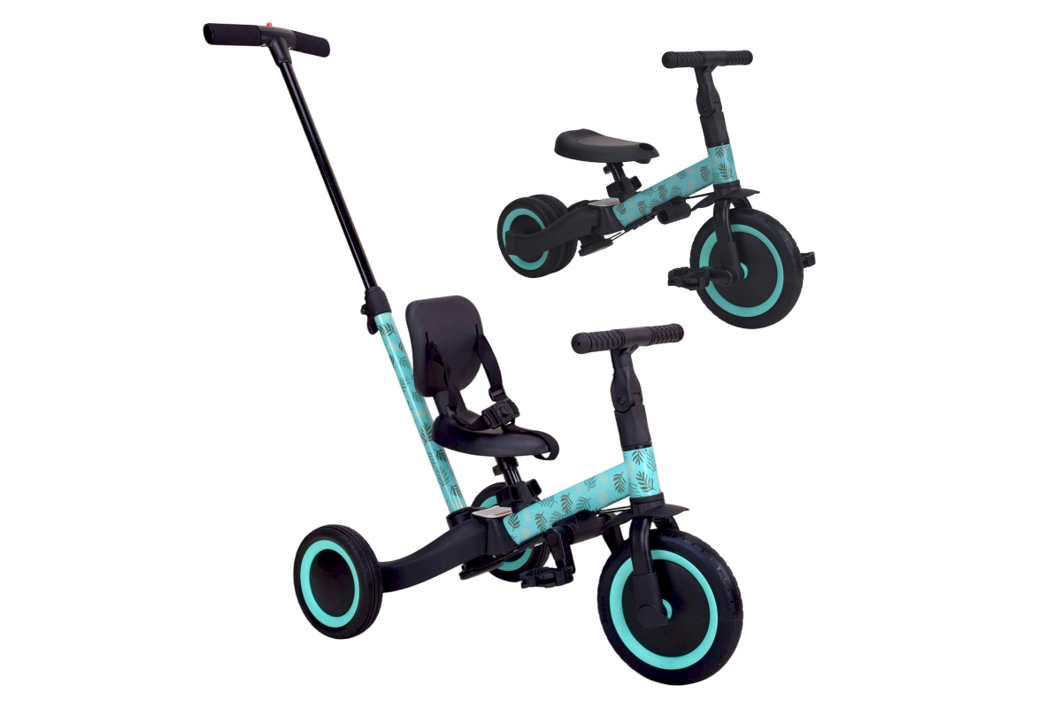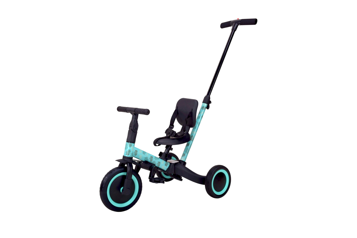Детский беговел-велосипед 4в1 с родительской ручкой, розовый с рисунком - TR007-CYAN-PAINT - это удобный, универсальный и надежный беговел для детей от 1 до 5 лет, с возможностью становиться велосипедом!