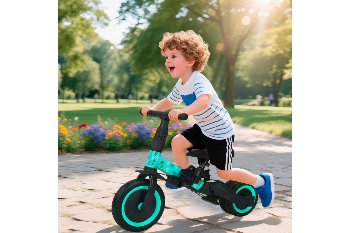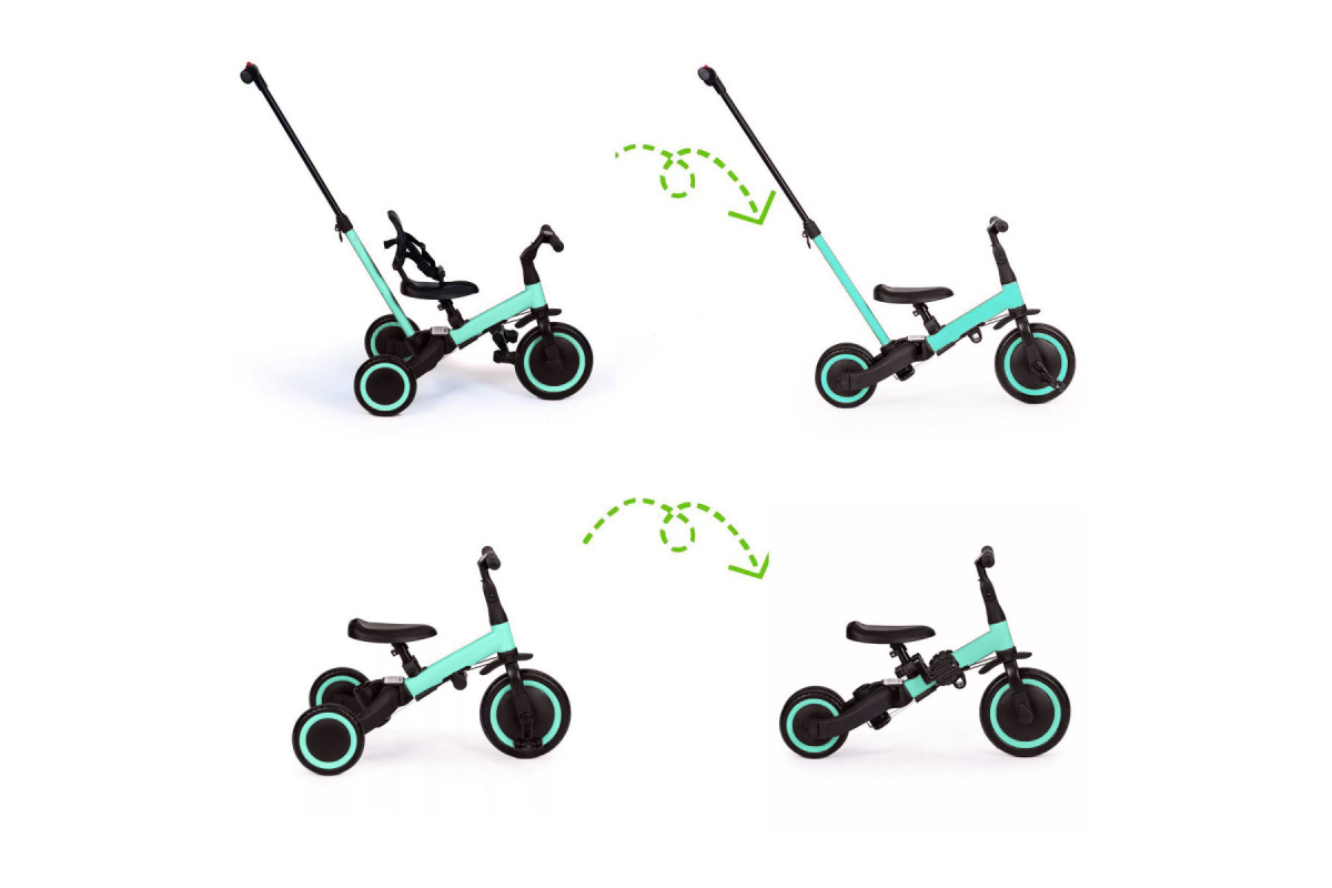 - Беговел-трансформер Knight TR007 может быть, как двухколёсным или трёхколесным беговелом, так и трёхколесным велосипедом.