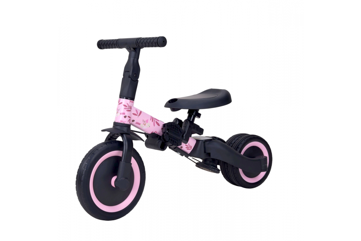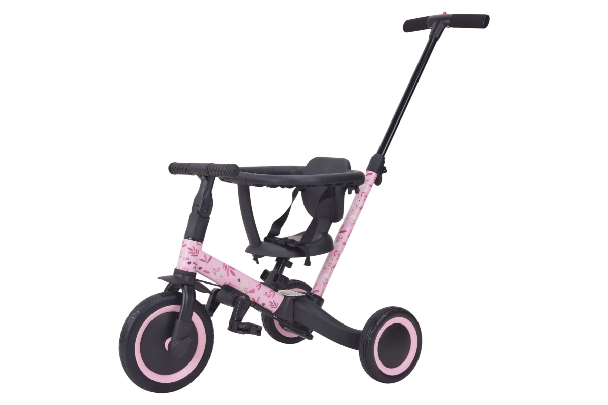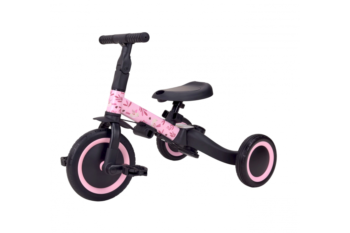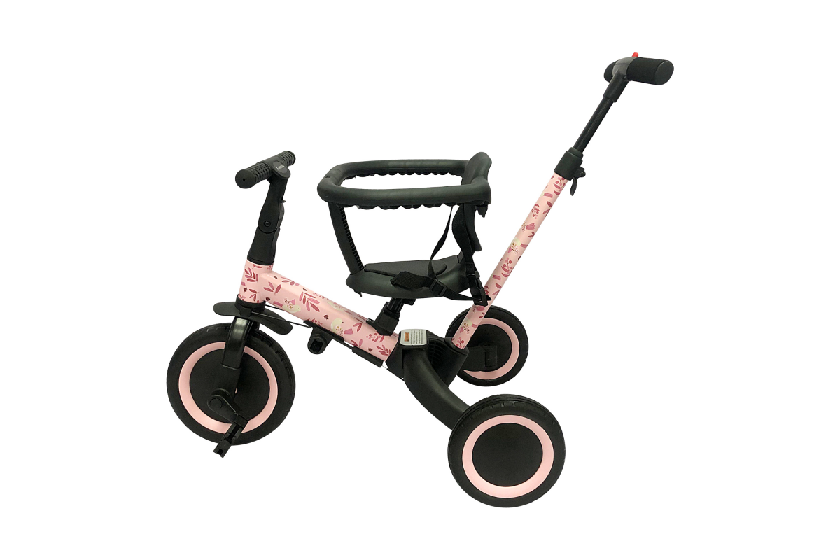 Детский беговел-велосипед 6в1 с родительской ручкой, розовый с рисунком - TR008-PINK-PAINT - это обновленная модель беговела TR007 с боковой поддержкой сиденья. TR008 - это удобный, универсальный и надежный беговел для детей от 1 до 5 лет, с возможностью становиться велосипедом!