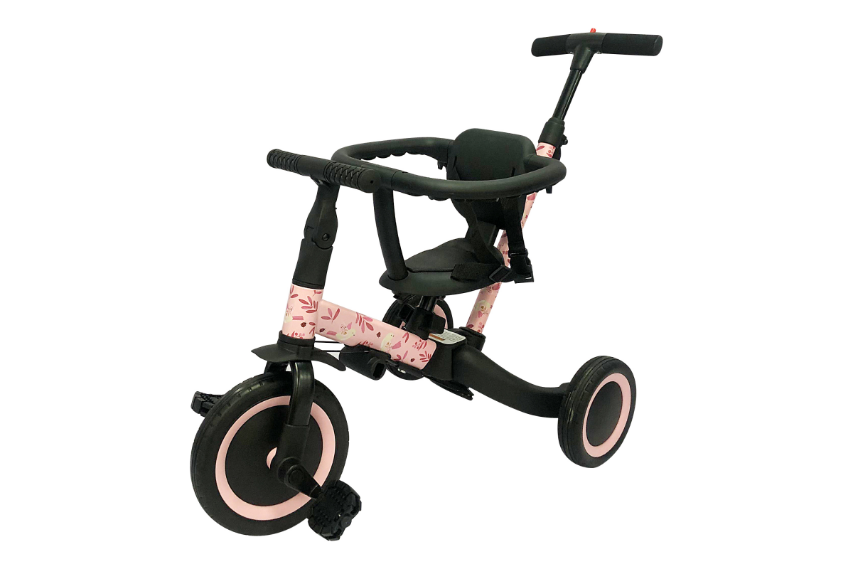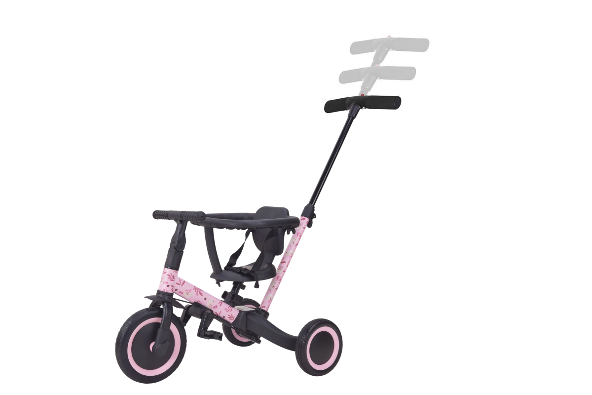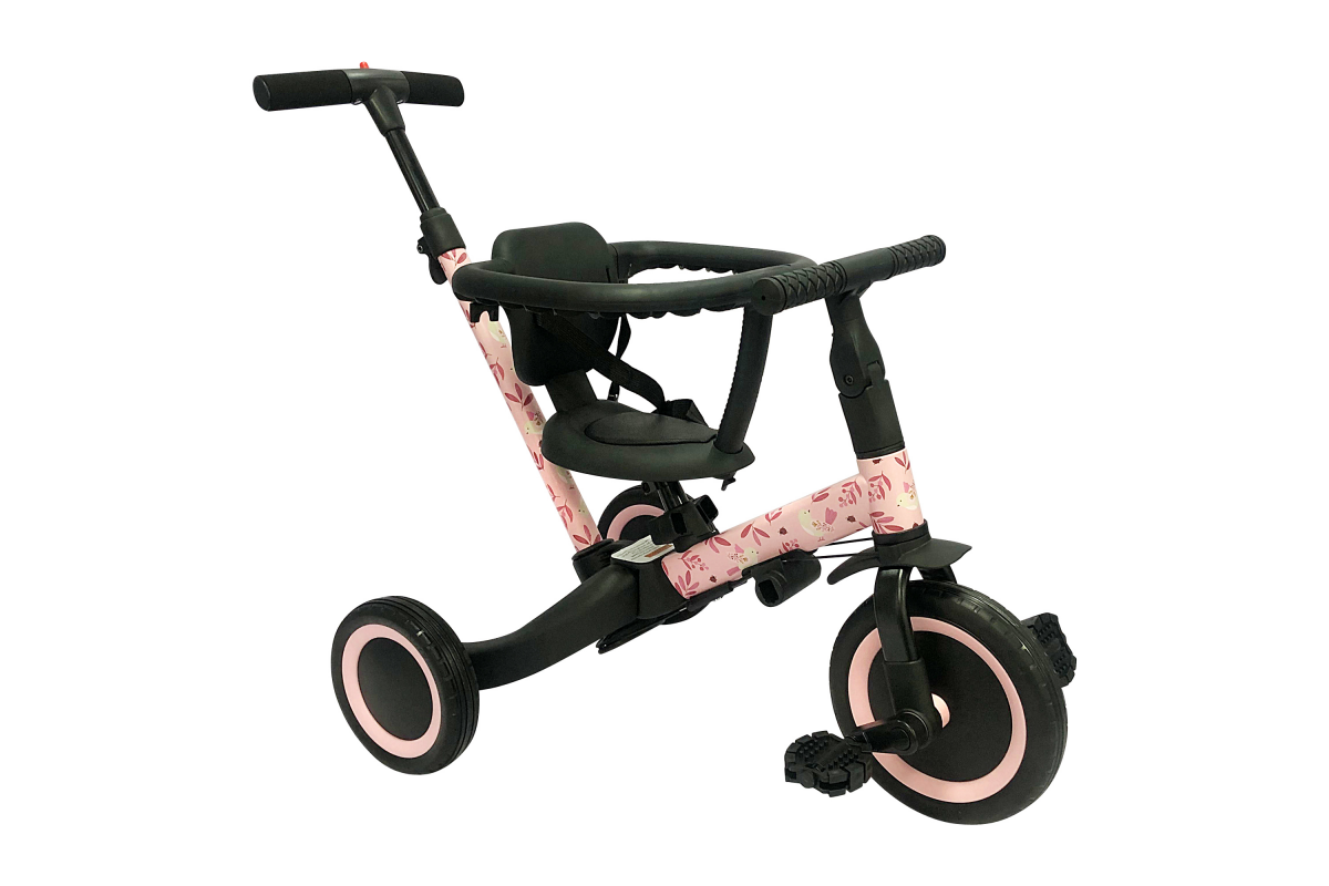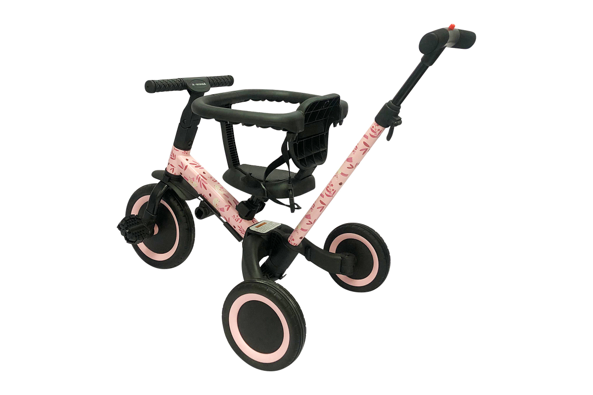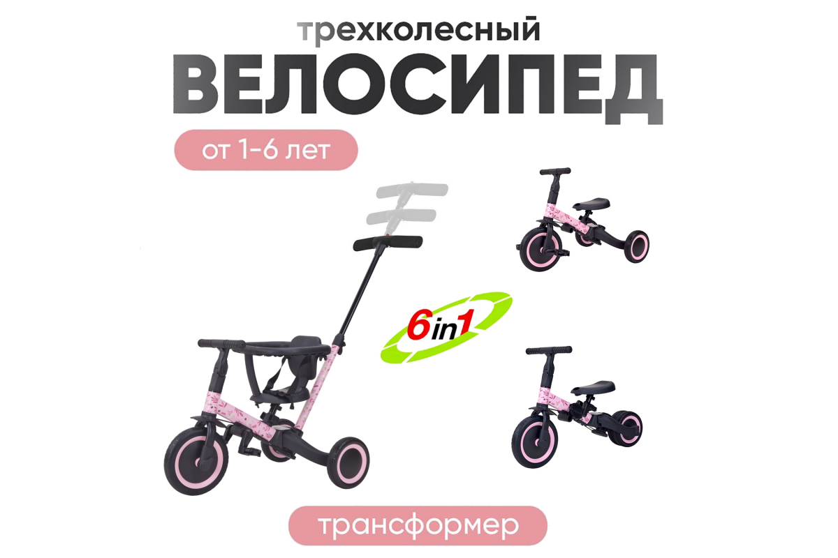Детский беговел-велосипед 6в1 с родительской ручкой, розовый с рисунком - TR008-PINK-PAINT - это обновленная модель беговела TR007 с боковой поддержкой сиденья. TR008 - это удобный, универсальный и надежный беговел для детей от 1 до 5 лет, с возможностью становиться велосипедом!