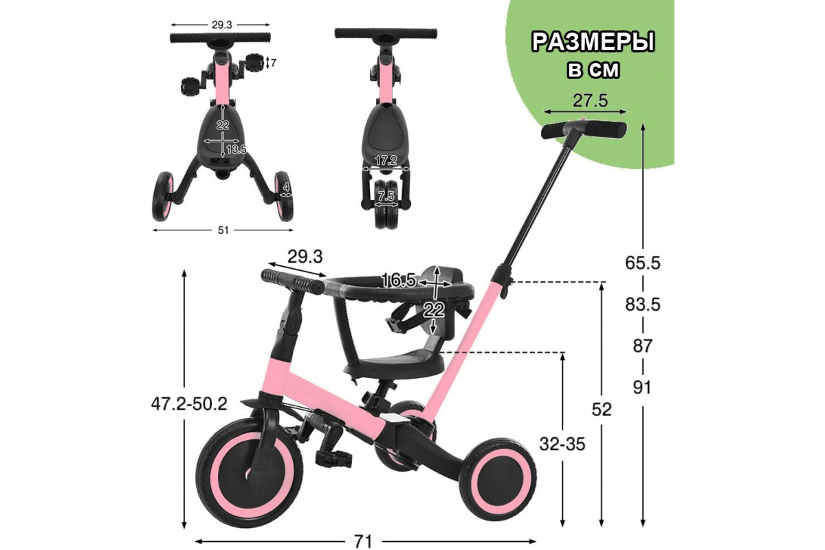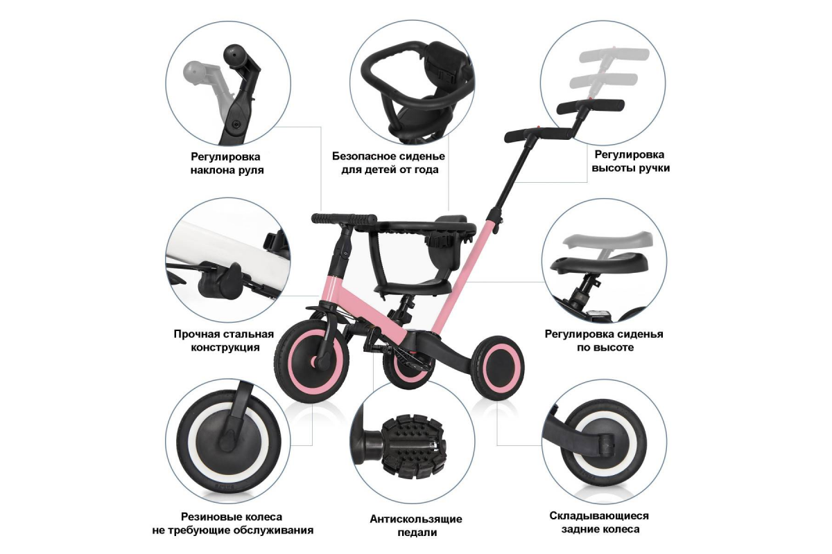 - Беговел-трансформер R-WINGS TR008 может быть, как двухколёсным или трёхколесным беговелом, так и трёхколесным велосипедом.