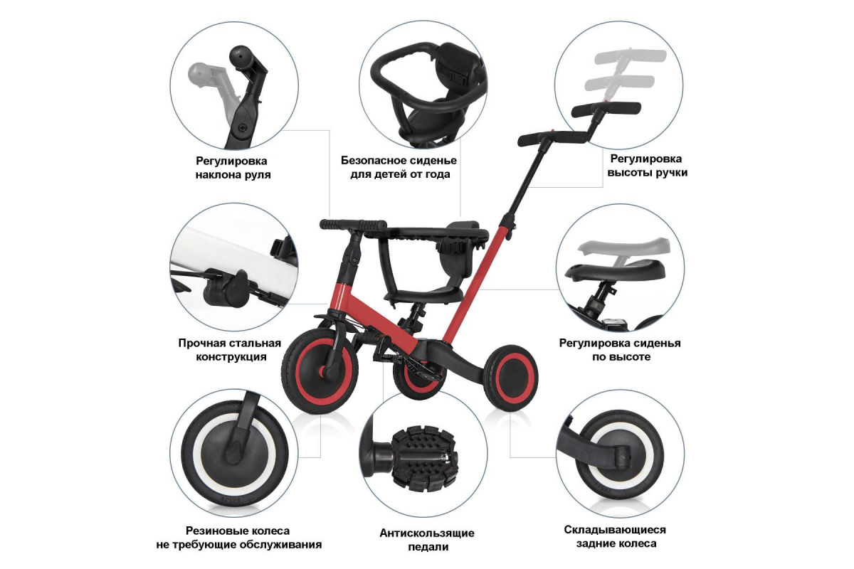 Детский беговел-велосипед 8в1 с крышей и ручкой, красный - TR008C-RED - это обновленная модель беговела TR008 с боковой поддержкой сиденья и защитным козырьком от солнца. TR008C - это удобный, универсальный и надежный беговел для детей от 1 до 5 лет, с возможностью становиться велосипедом!