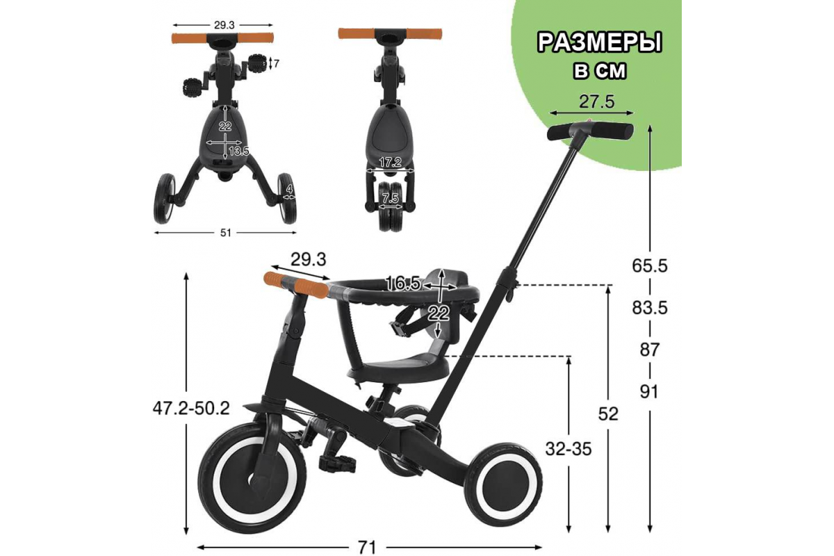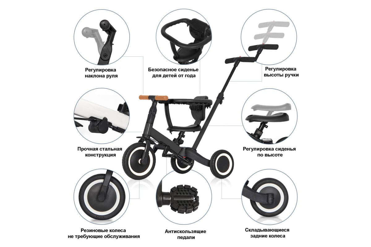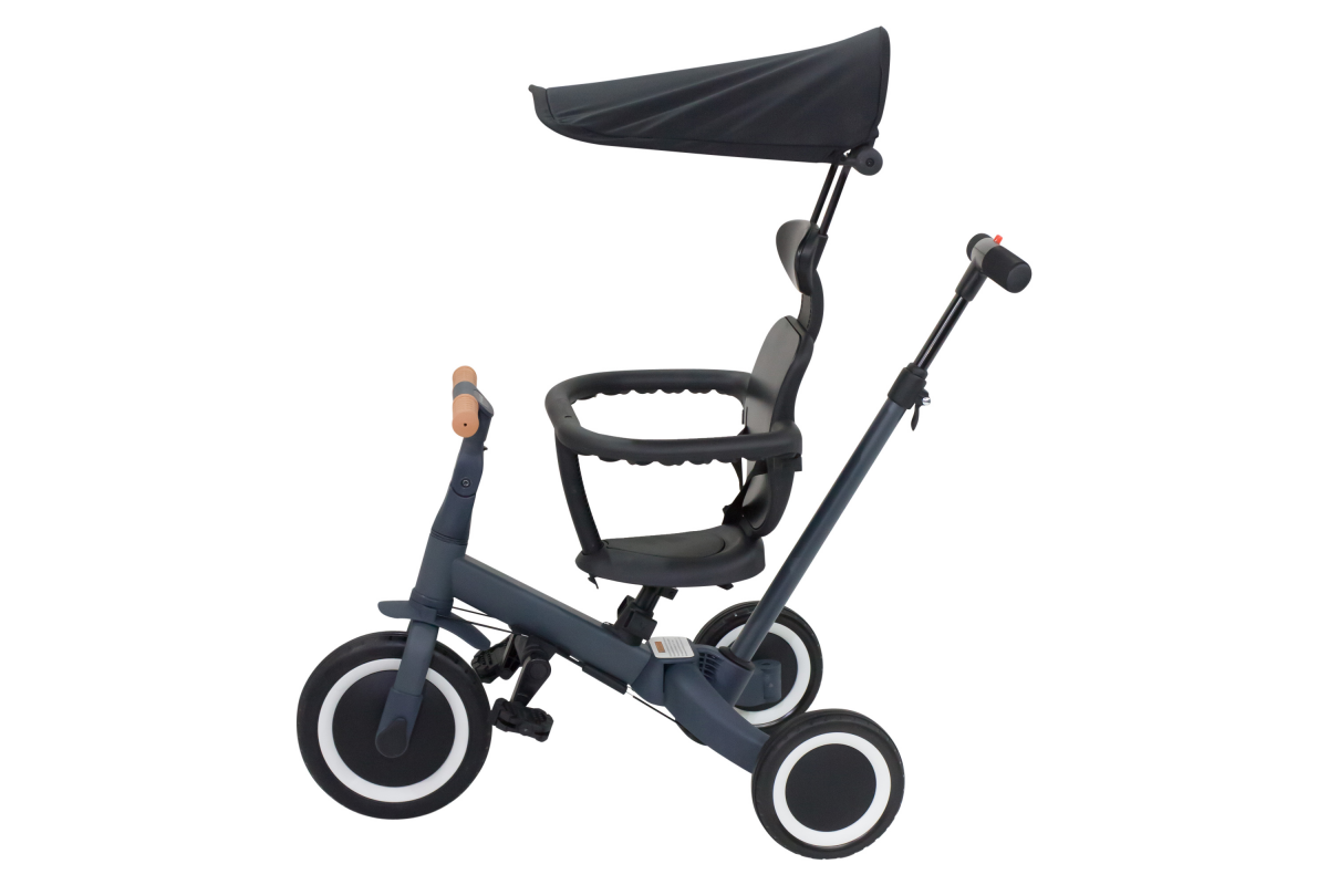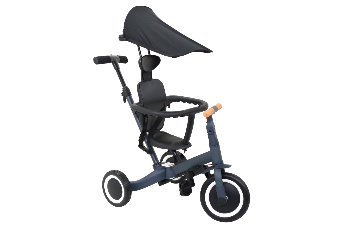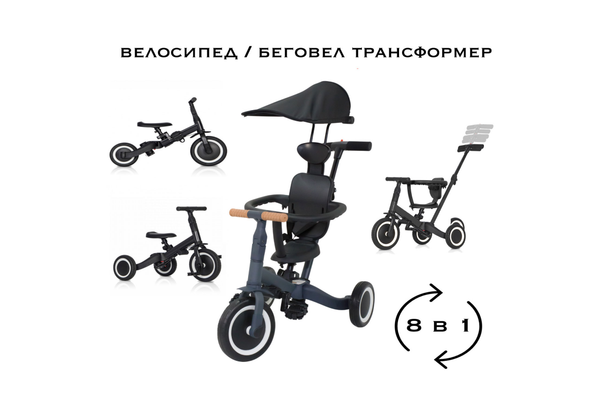 Детский беговел-велосипед 8в1 с крышей и ручкой, темно-серый - TR008C-DARK-GREY - это обновленная модель беговела TR008 с боковой поддержкой сиденья и защитным козырьком от солнца. TR008C - это удобный, универсальный и надежный беговел для детей от 1 до 5 лет, с возможностью становиться велосипедом!
