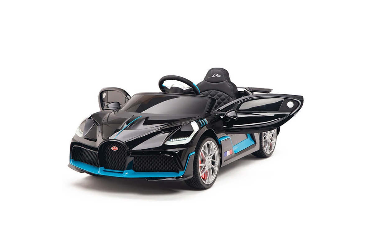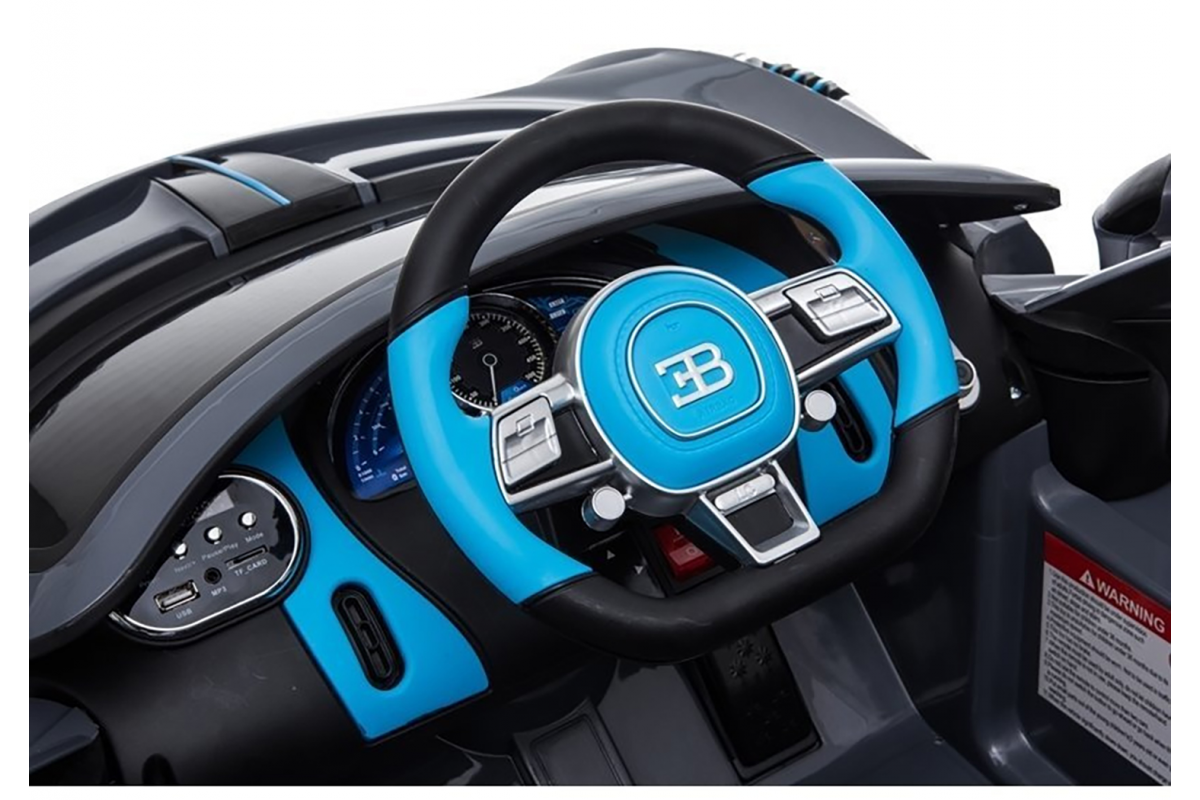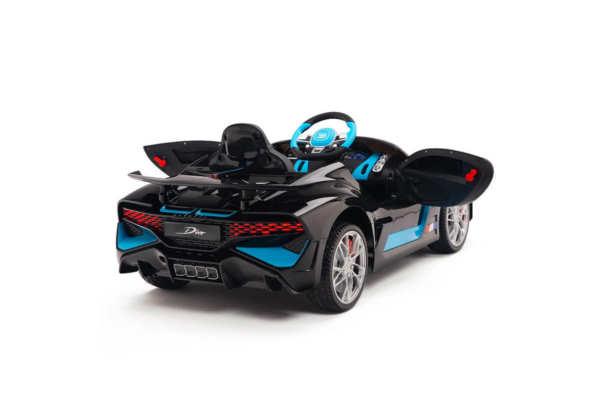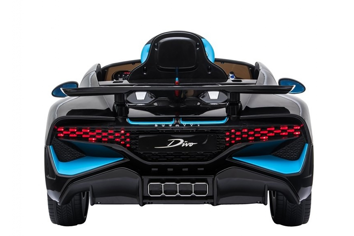 Детский электромобиль Bugatti Divo (черный, 12V) - HL338 - это детский одноместный электромобиль Bugatti Divo по лицензии известного автоконцерна выполнен по стилю легендарной спортивной версии Bugatti. Двухскоростной автомобиль с пультом радиоуправления, у него открываются боковые двери и багажник. Отличие этой модели от других – мягкие резиновые колеса, встроенная магнитола, LEВ подсветка фар и звук мотора, сиденье из перфорированной черной экокожи с логотипом и пульт управления 2.4G.