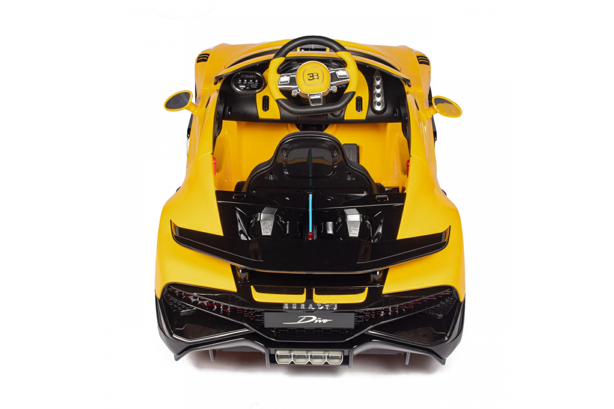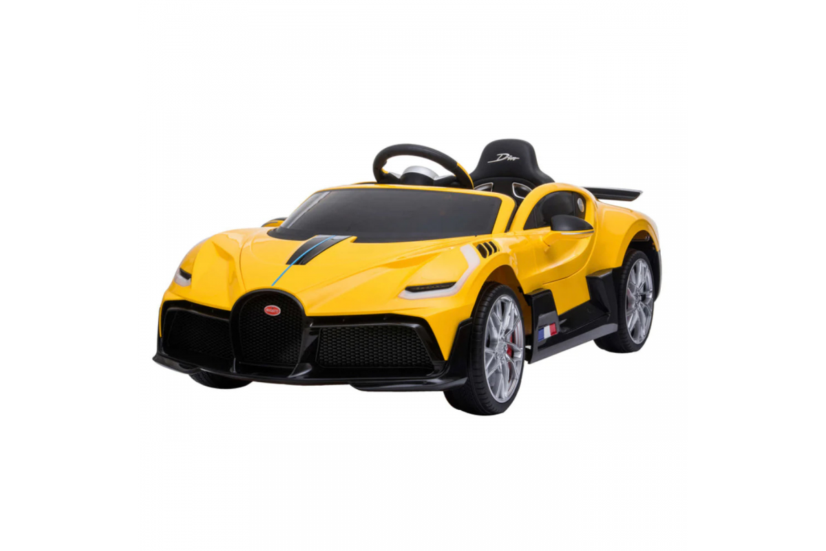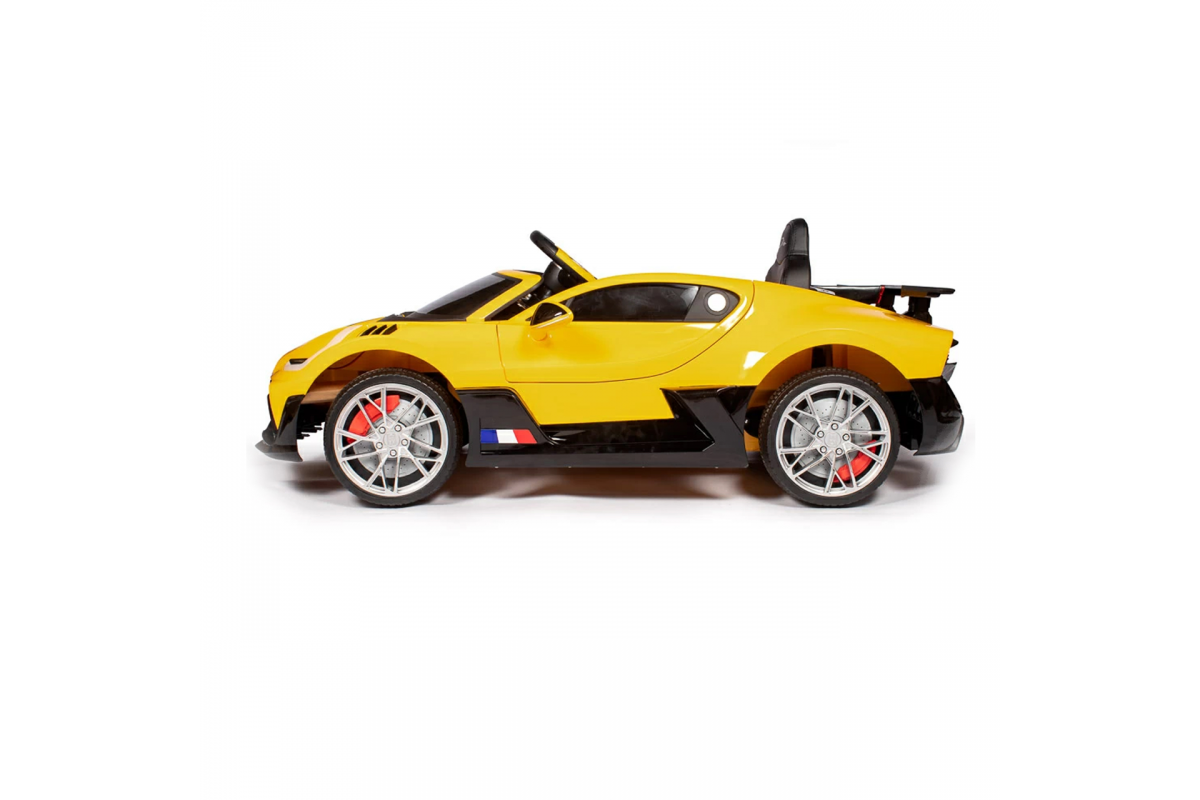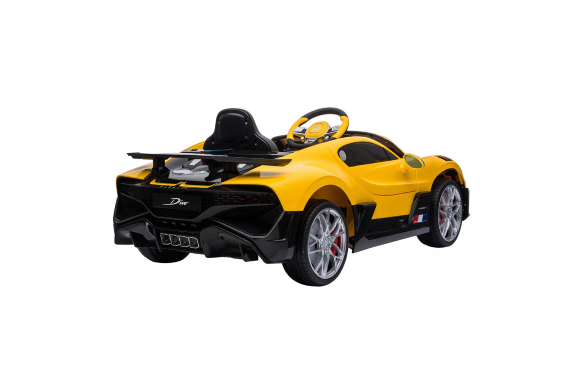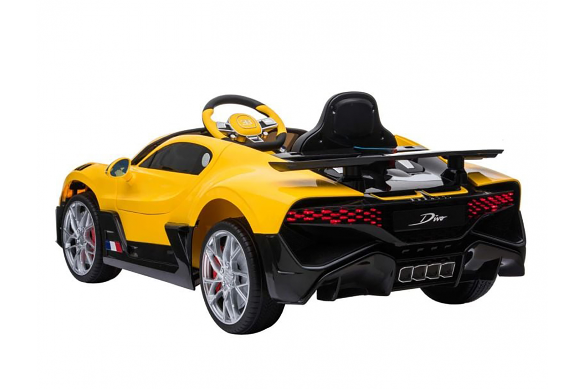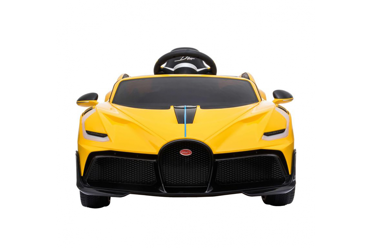 Детский электромобиль Bugatti Divo (желтый лак, 12V) - HL338 - это детский одноместный электромобиль Bugatti Divo по лицензии известного автоконцерна выполнен по стилю легендарной спортивной версии Bugatti. Двухскоростной автомобиль с пультом радиоуправления, у него открываются боковые двери и багажник. Отличие этой модели от других – мягкие резиновые колеса, встроенная магнитола, LEВ подсветка фар и звук мотора, сиденье из перфорированной черной экокожи с логотипом и пульт управления 2.4G.