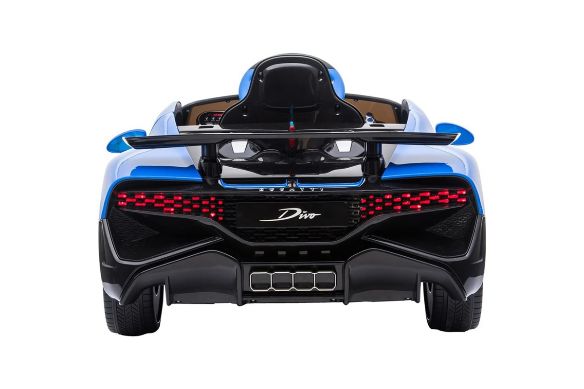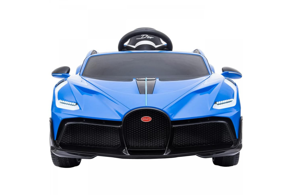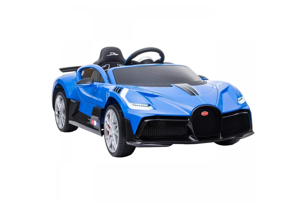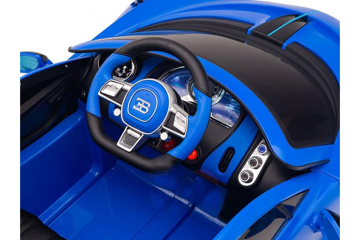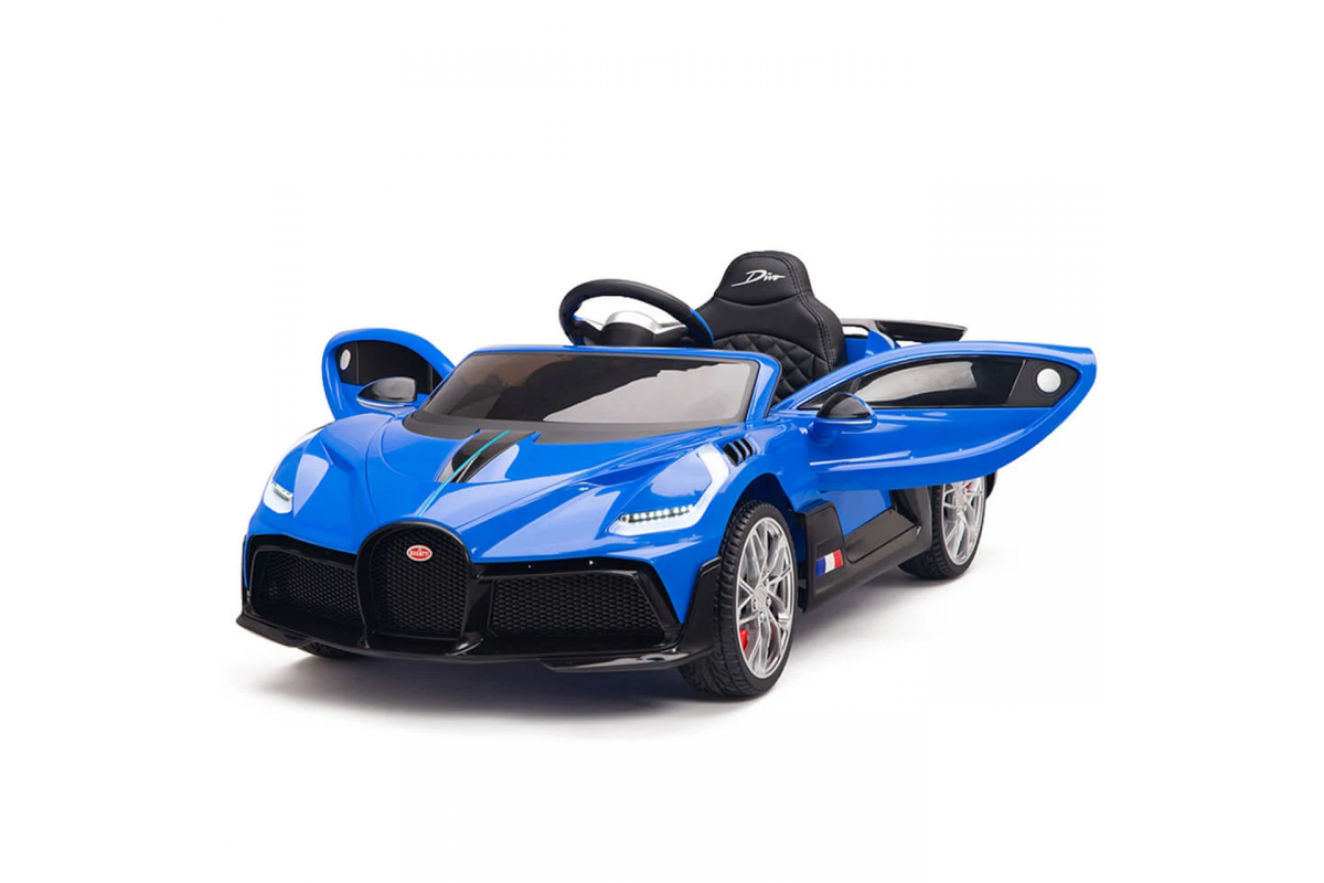Детский электромобиль Bugatti Divo (синий, 12V) - HL338 - это детский одноместный электромобиль Bugatti Divo по лицензии известного автоконцерна выполнен по стилю легендарной спортивной версии Bugatti. Двухскоростной автомобиль с пультом радиоуправления, у него открываются боковые двери и багажник. Отличие этой модели от других – мягкие резиновые колеса, встроенная магнитола, LEВ подсветка фар и звук мотора, сиденье из перфорированной черной экокожи с логотипом и пульт управления 2.4G.