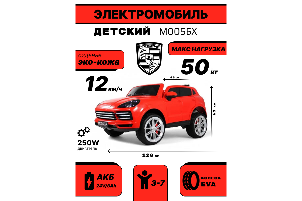 Детский двухместный электромобиль Porshe М005БХ красный