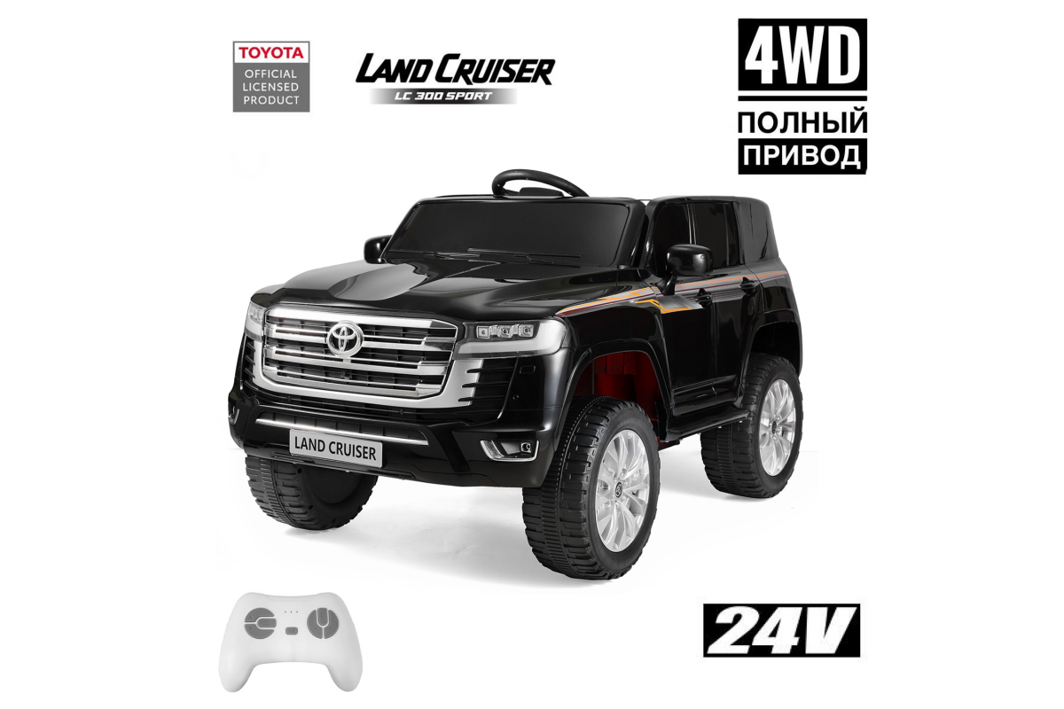 Детский электромобиль Toyota Land Cruiser 24V 4WD - LC-300-BLACK - это копия внедорожника Toyota Land Cruiser 300, предназначенная для детей от 1 года до 6 лет. Он оснащён четырьмя мощными редукторами для отличной проходимости и устойчивости, а также аккумулятором 24 вольта с повышенной ёмкостью 8 А·ч, обеспечивающим более длительное время катания. Максимальная скорость электромобиля составляет до 9 км/ч, а нагрузка на него - до 50 кг. В комплекте идёт мягкое кожаное сиденье с 5-точечным ремнём безопасности.