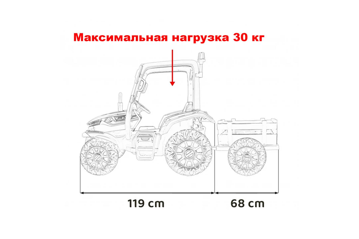 - Габариты трактора без прицепа: 119 см х 80 см х 102 см