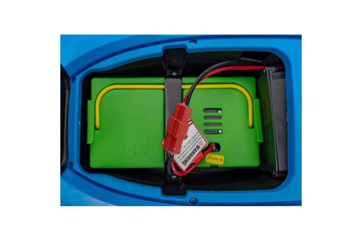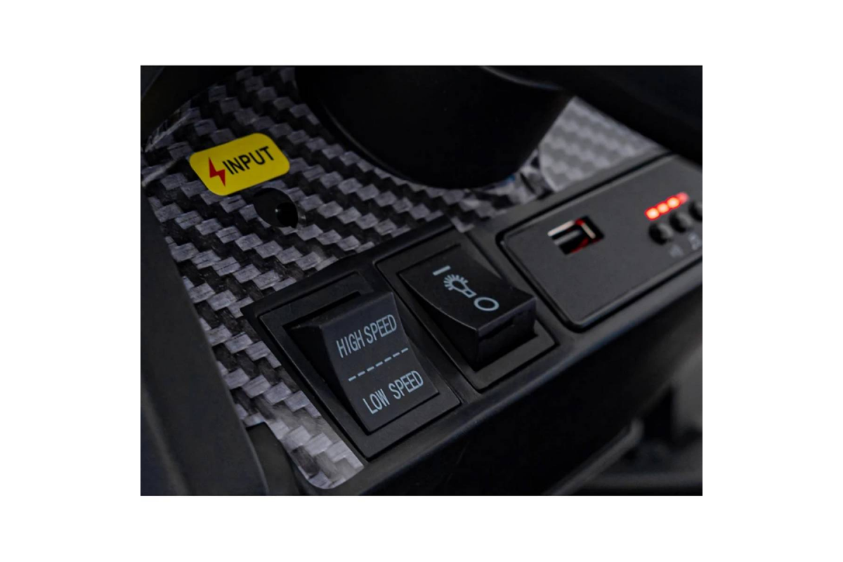 Благодаря большим колесам с протекторами у машины прекрасная проходимость. В салоне большое кожаное водительское сидение с ремнями безопасности и ограничительными бортиками по бокам, настоящая аудиомагнитола с возможностью подключения гаджетов через разъем USB или по Bluetooth.